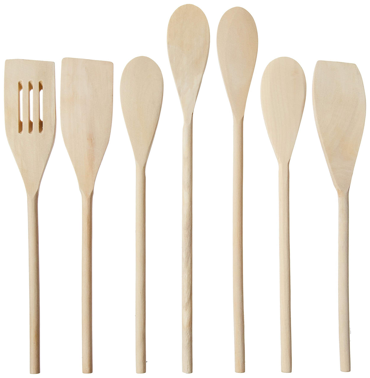 Mountain Woods 7 Piece Organic Wood Utensil Set, Spatula And Spoons | Eco-Friendly Safe Kitchen Cooking Tools