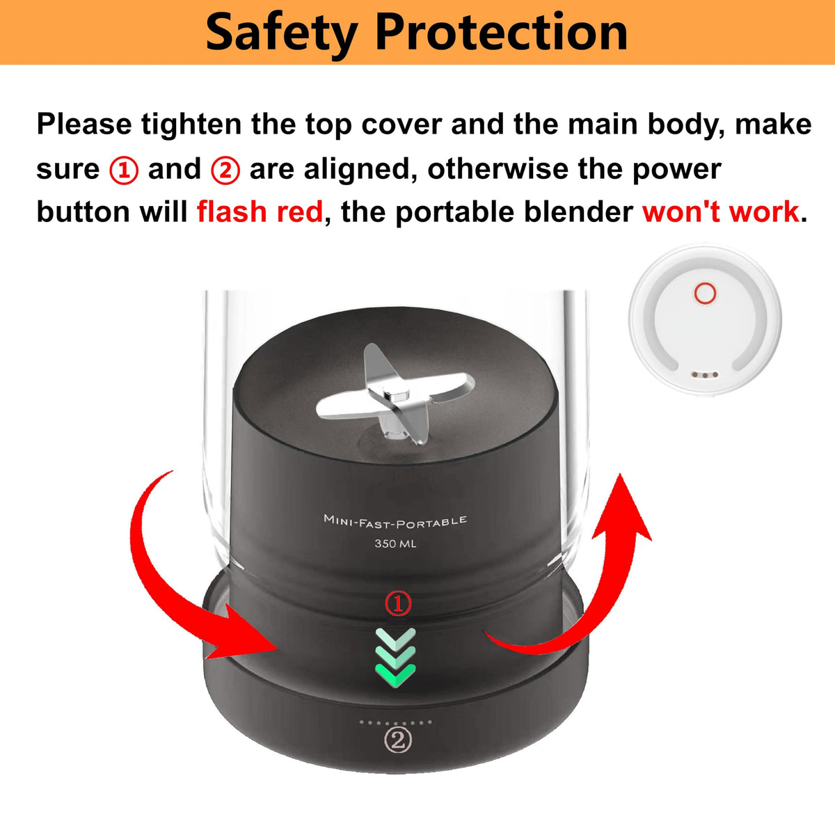 • Q: What should I do if the blender does not turn on? A: If the blender does not turn on and the button flashes red, ensure that the bottle lid and base are tightly secured.