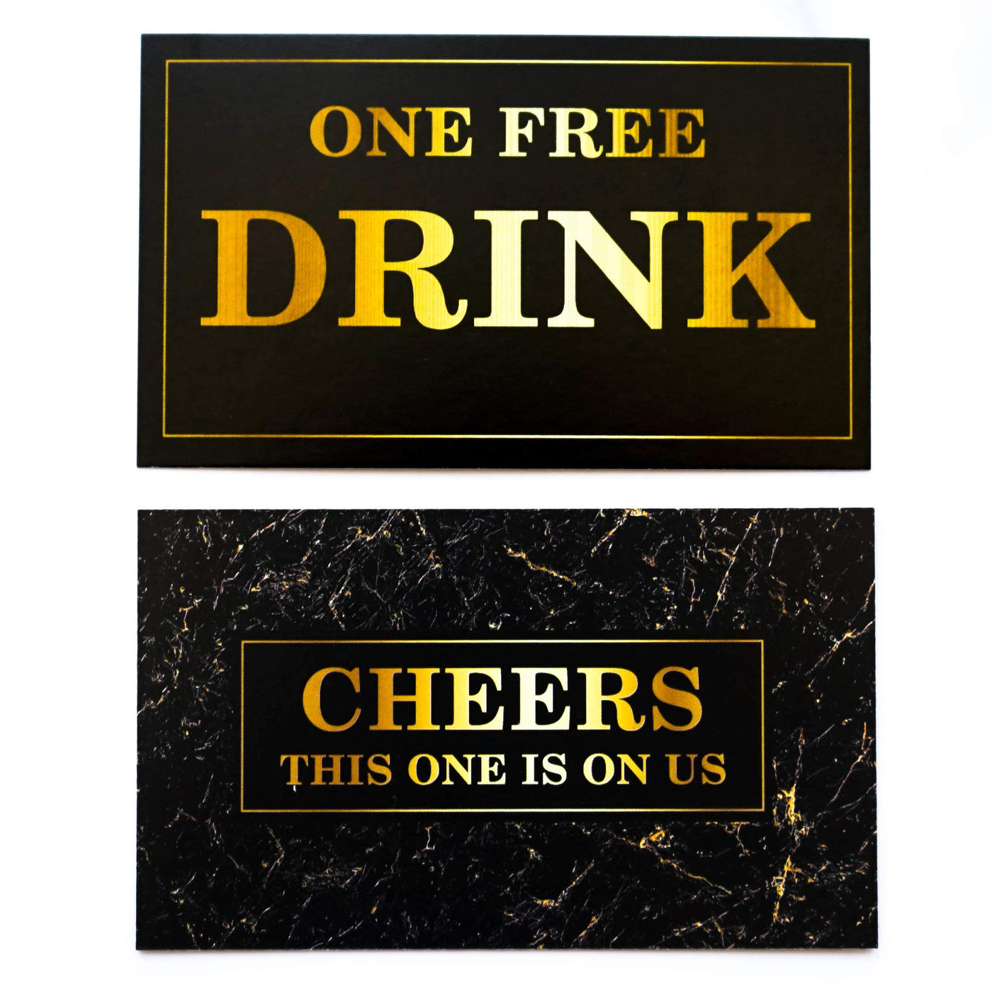 - Q: Do the drink tickets indicate that guests can only have one free drink? A: Yes, each card is designed for one guest to receive one free drink, making it clear that it is not an open bar.