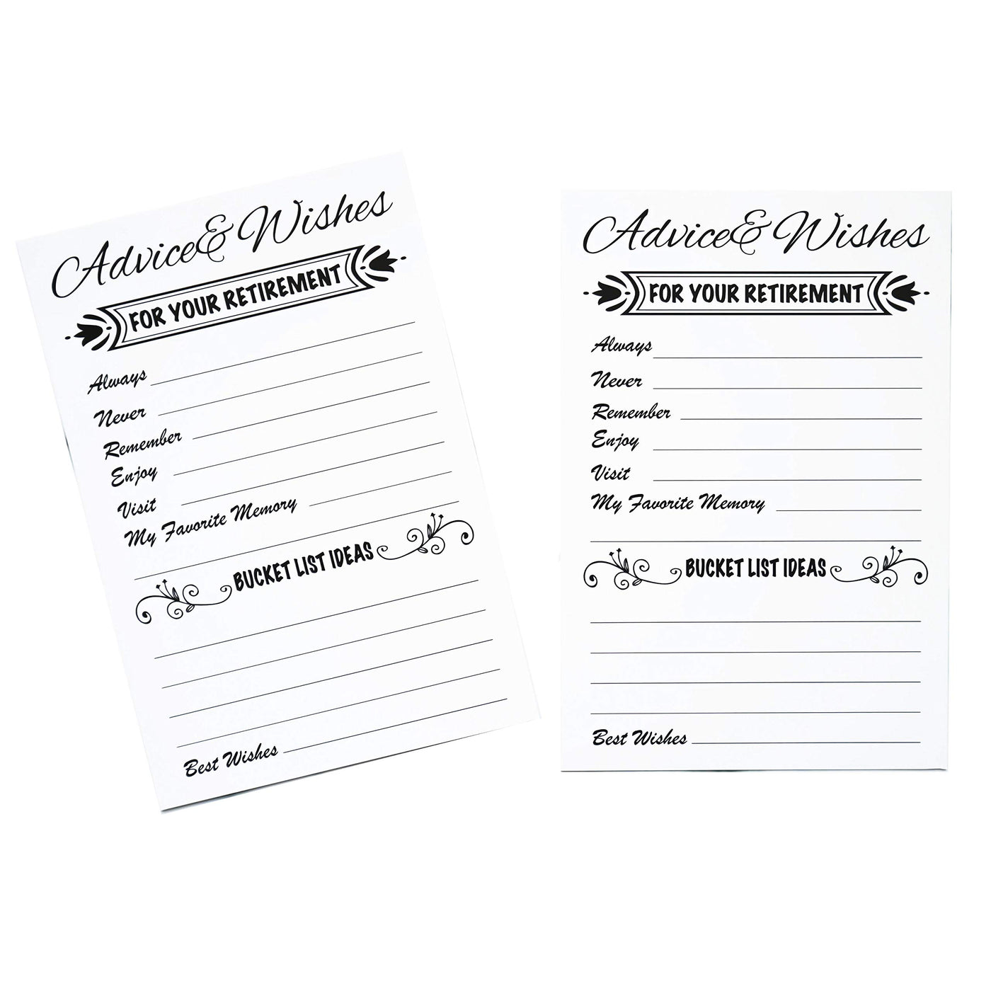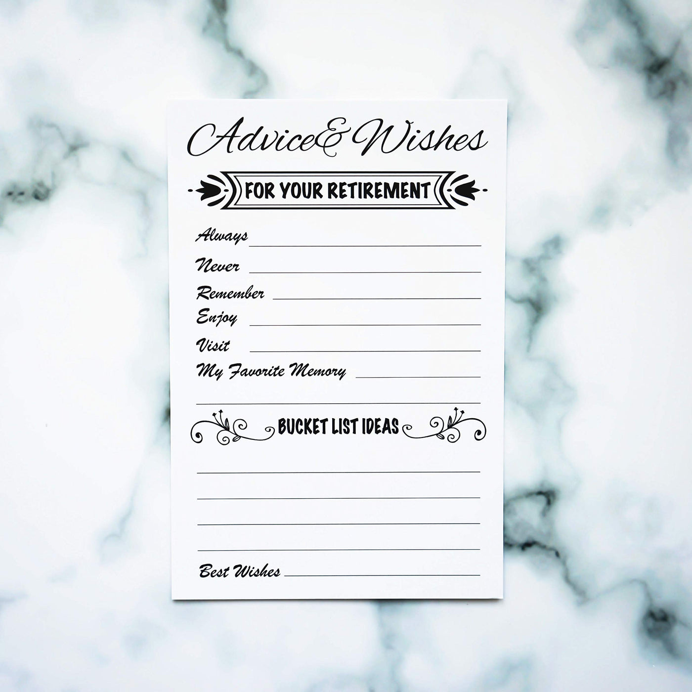 - Q: What is the primary purpose of these advice cards? A: The primary purpose of these cards is to let guests write down their well wishes and advice for the retiree, along with suggestions for future adventures.
