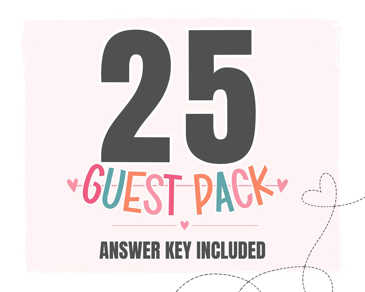 - Q: What is included in the Twinkling Star Baby Shower Word Scramble Game pack? A: The pack includes 25 game cards designed for a fun baby shower activity, along with an answer key to help you track the winners.