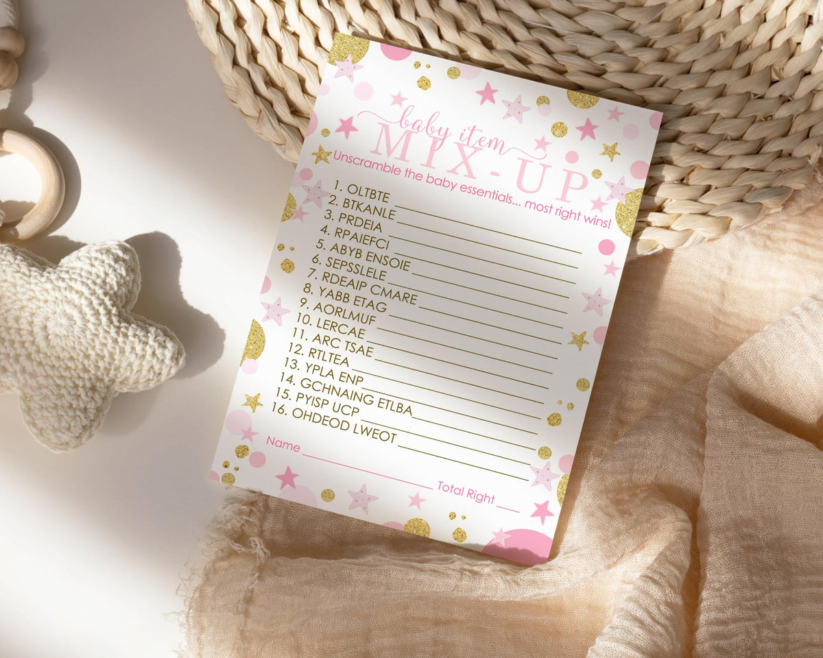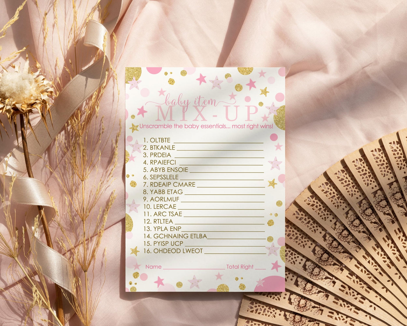 Twinkling Star Baby Shower Word Scramble Game Cards (25 Pack) Baby Shower Games For Girls, Cute Guest Party Game Ideas, Unique F