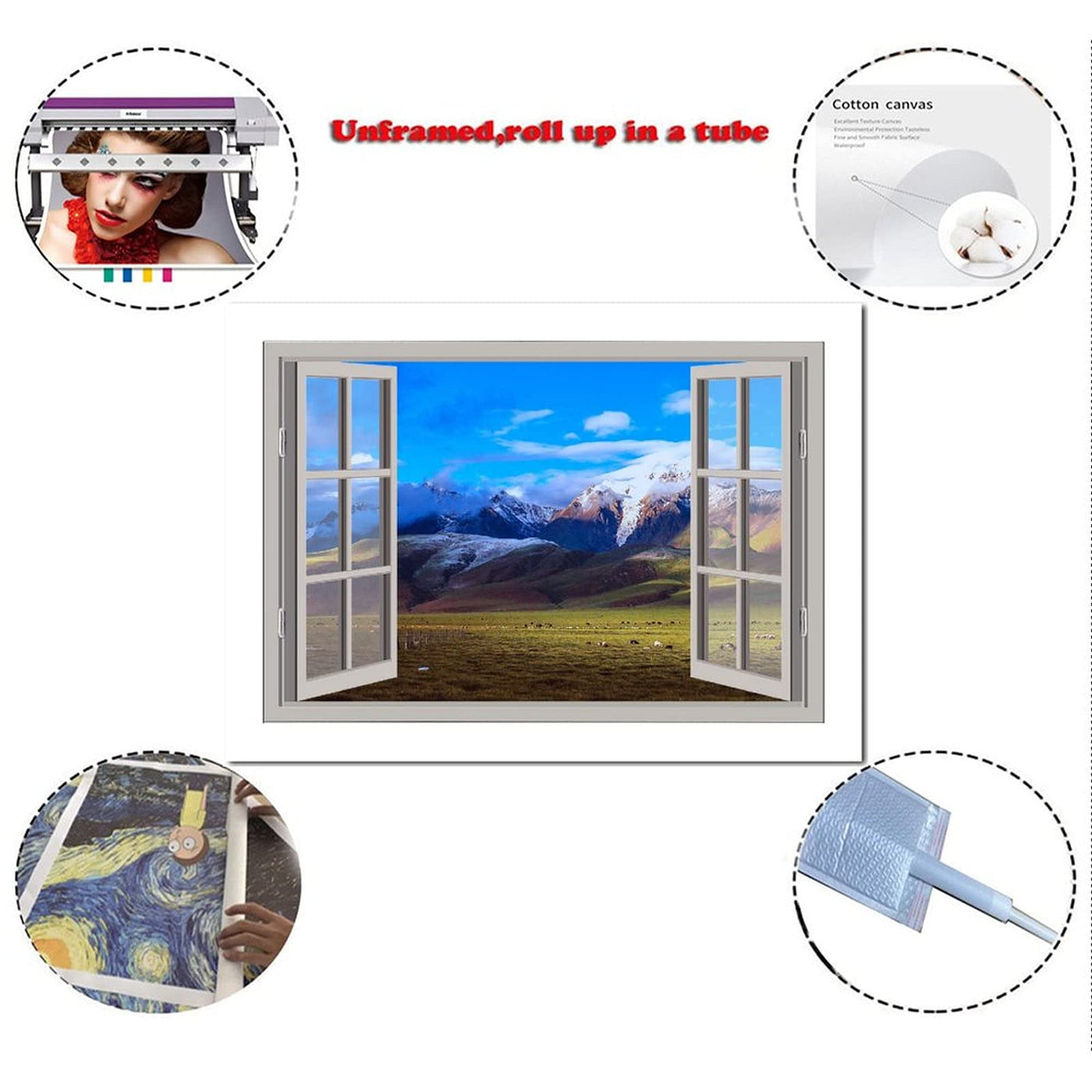 3D Open Window View Grassland Natural Scenery Posters Canvas Painting Modern Wall Art Home Living Room Decor Bedroom Aesthetic M