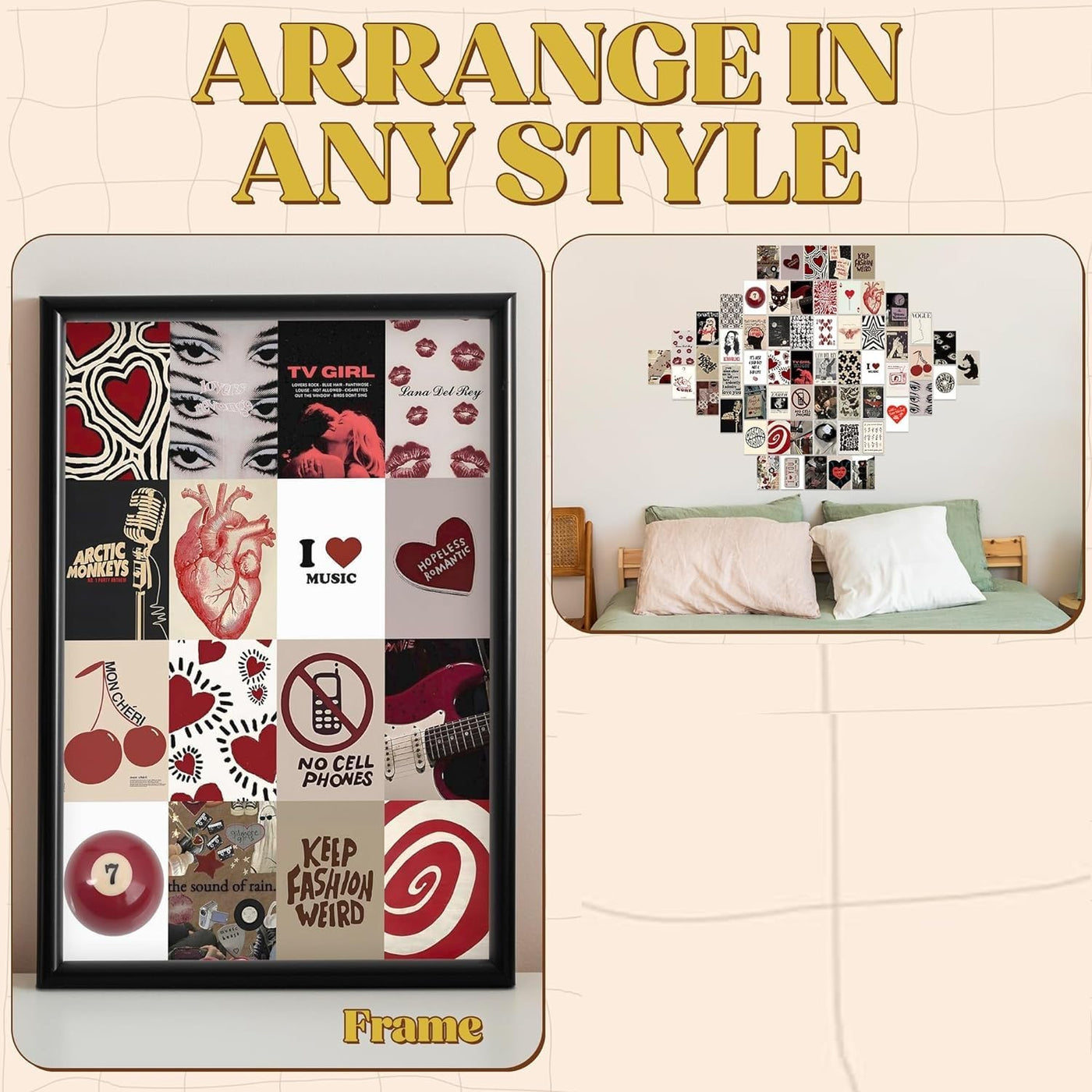 Eclectic and Iconic Design Mix: This collection boasts 60 unique pieces, blending elements from Y2K culture, grunge, retro music, and Coquette aesthetics. Each poster serves as a standalone piece of art and part of a greater narrative when combined.