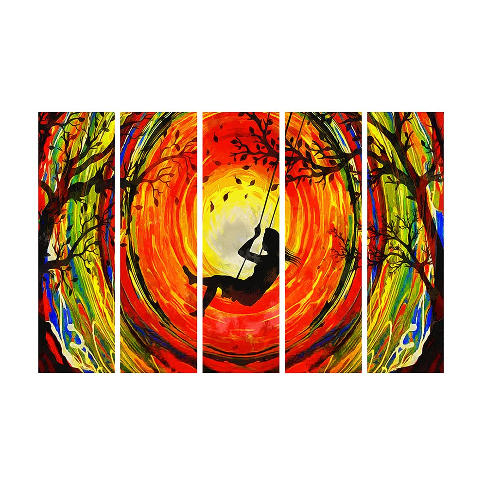 999Store 5 Panel Wall Painting Wall Frames Wall Hanging Girls Swinging On The Swing Art Panels Modern Art (Mdf_Size_76X130 Cms_C