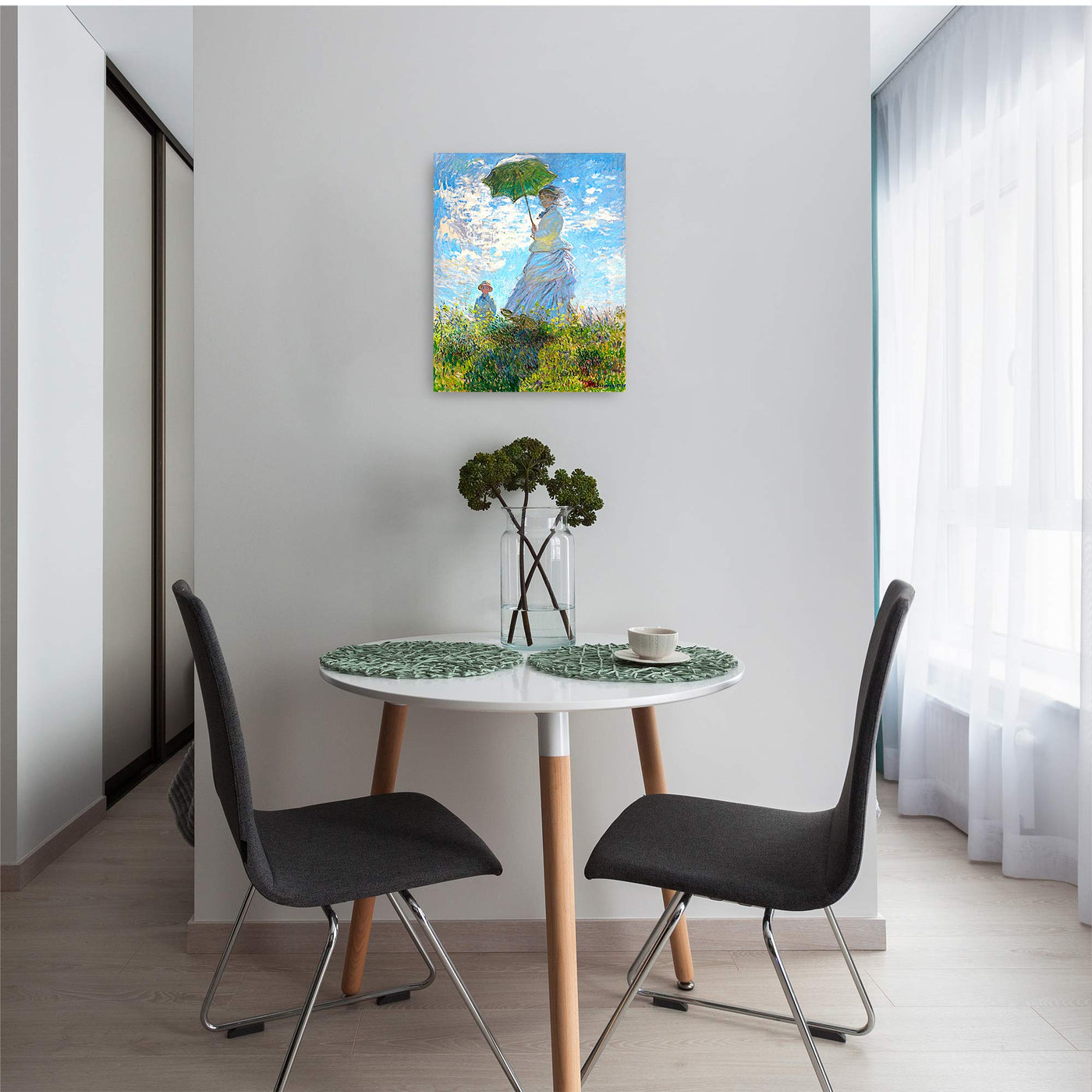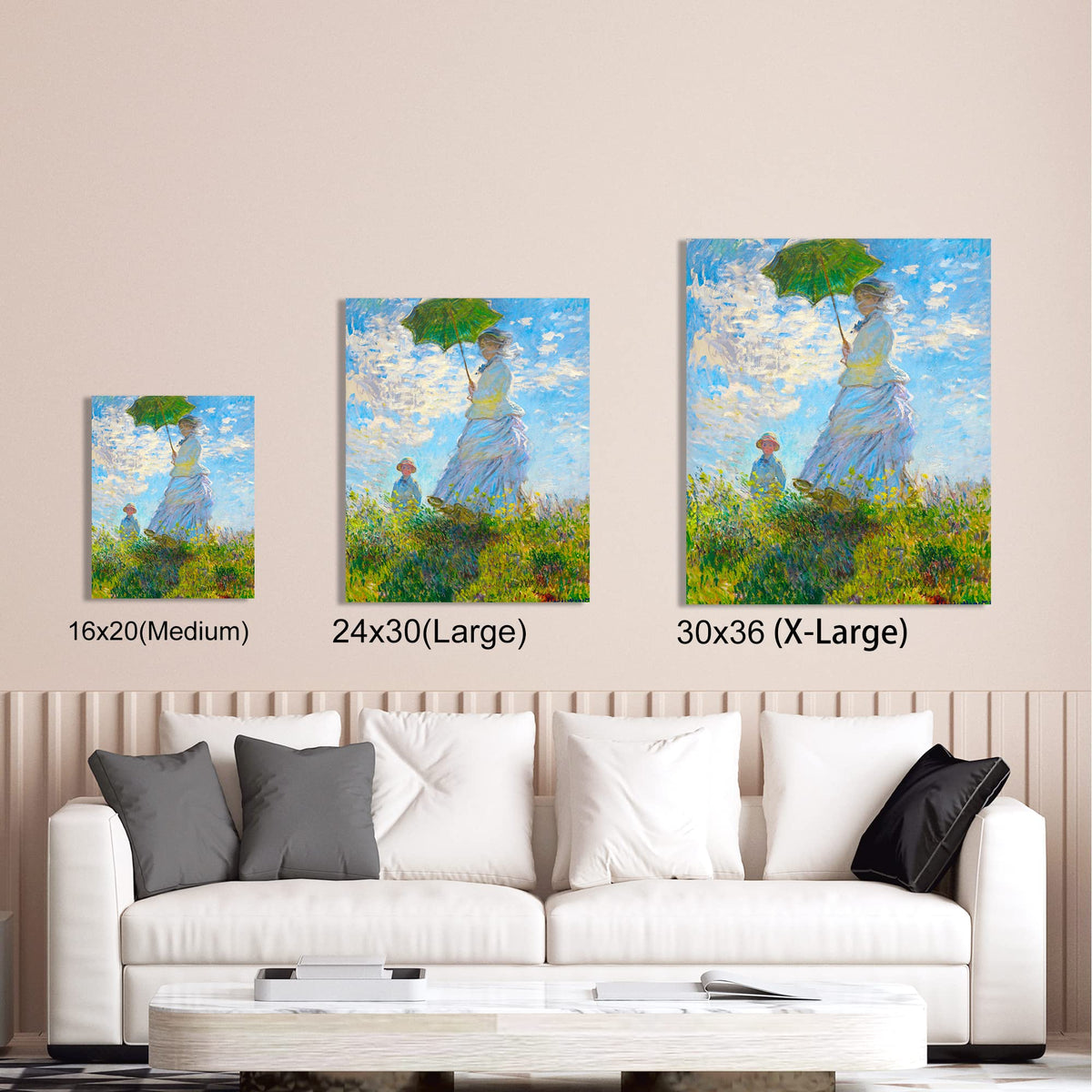 - Q: Is this piece a reproduction or an original? A: This piece is a giclee reproduction of Claude Monet's original painting, 'Woman with a Parasol'.