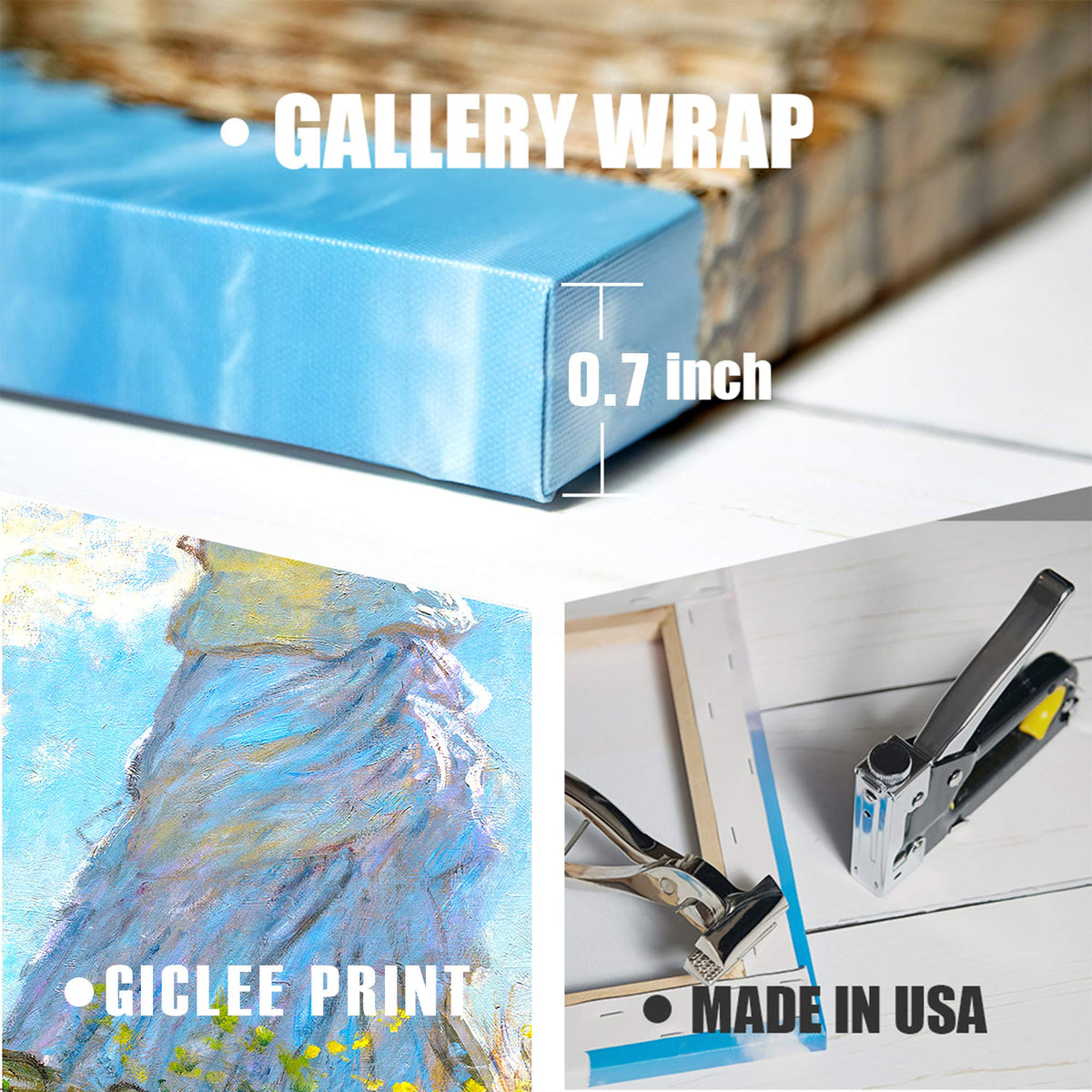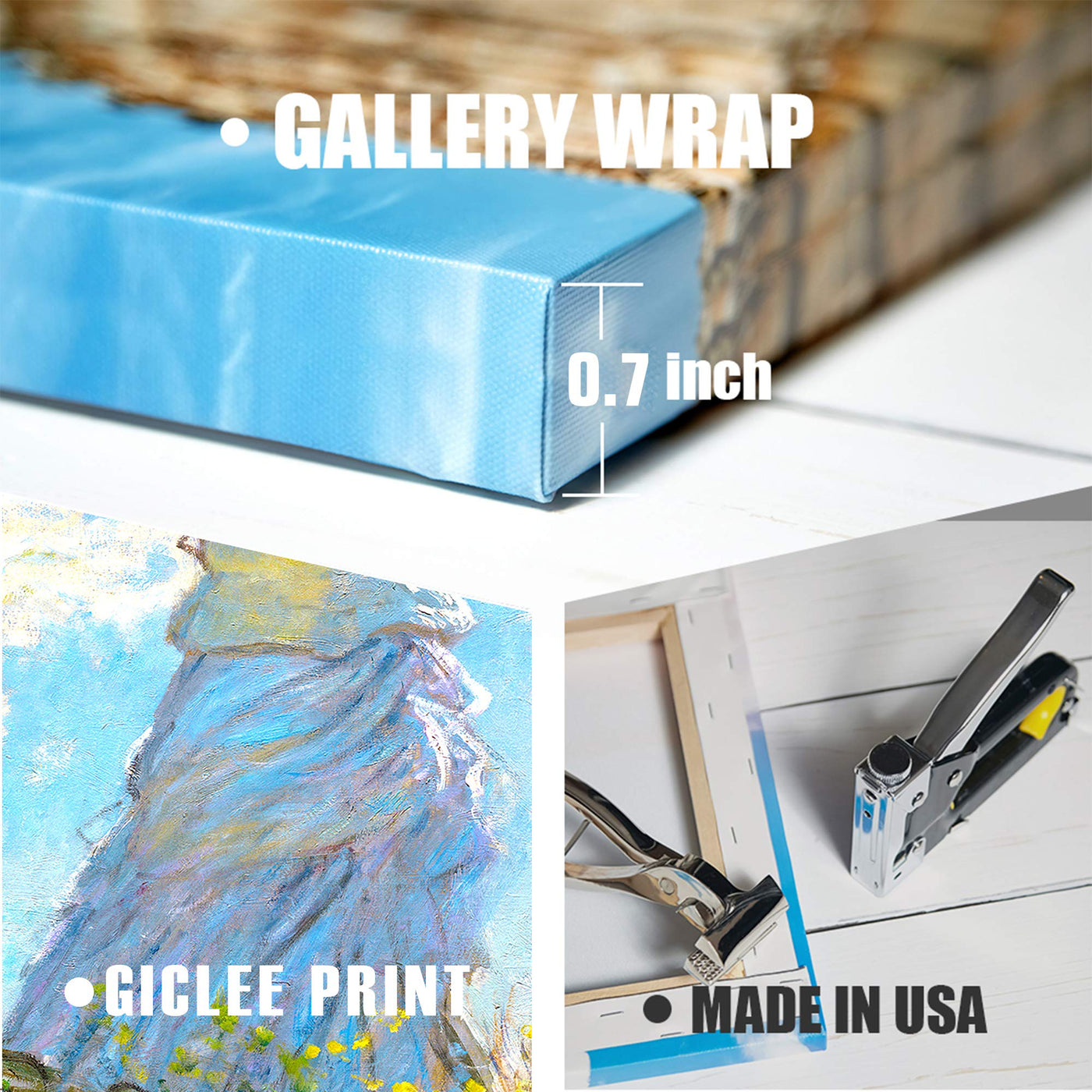 - Q: How thick are the canvas gallery wraps? A: The gallery wraps are 11/16 inch thick.