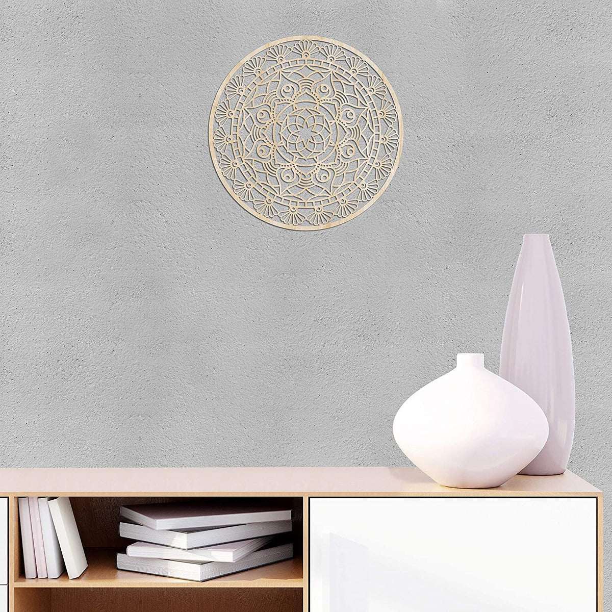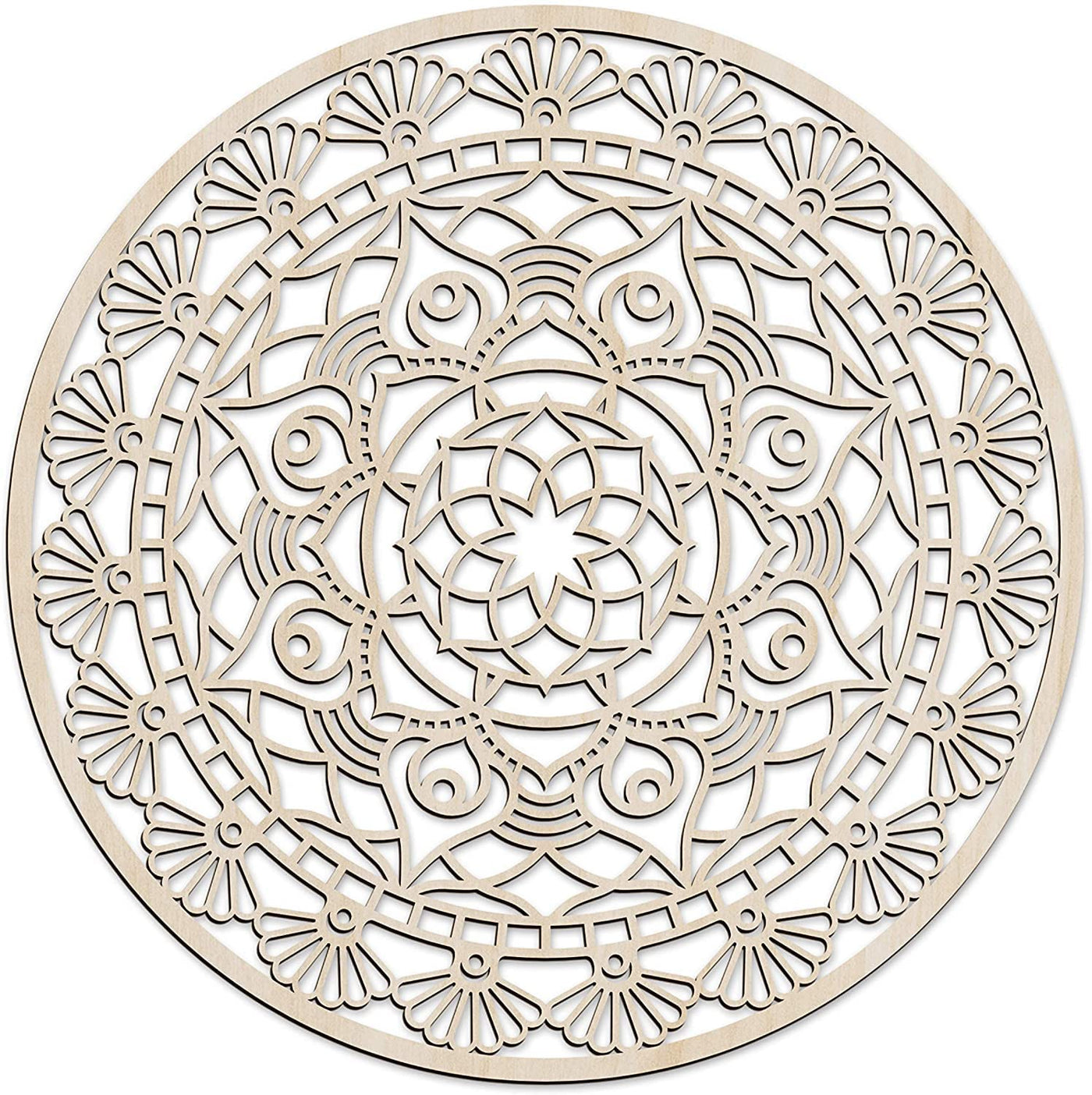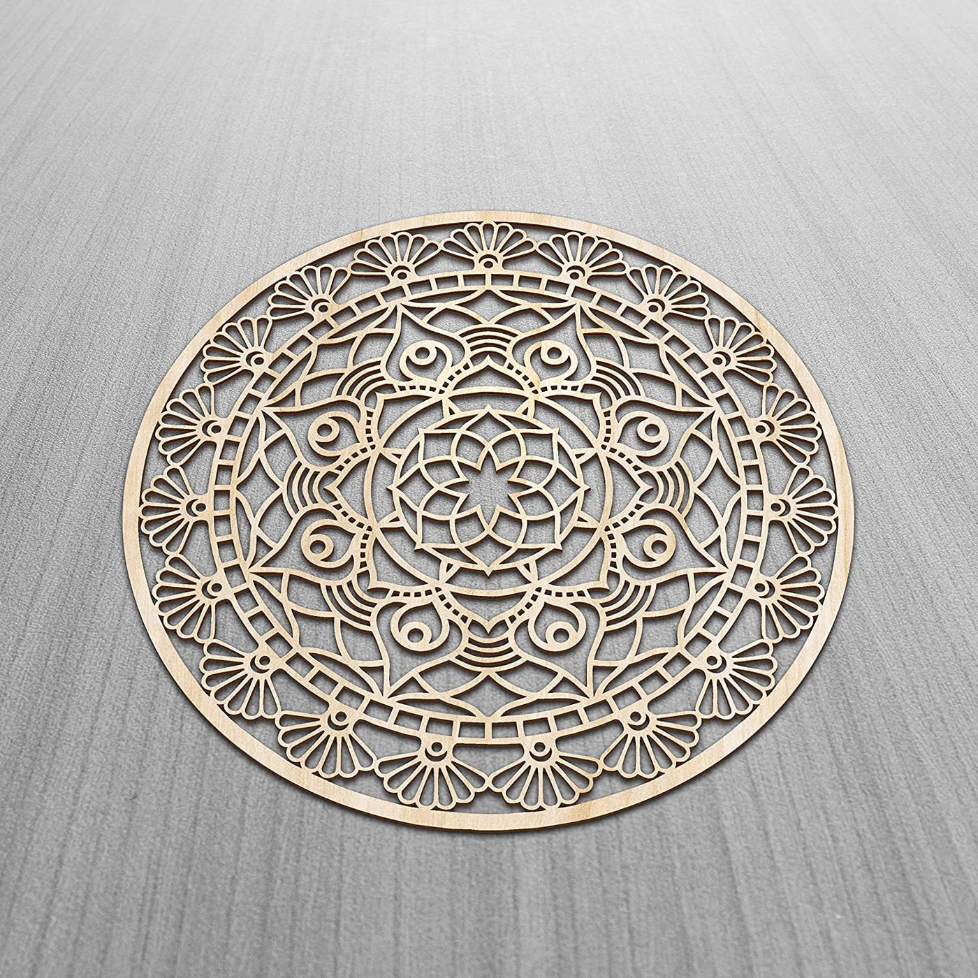 American-Elm Mandala Wooden Wall Art, Floral Oriental Design Petals Leaves, Birch Wood Plywood Rustic Wall Art Accent For Hallwa