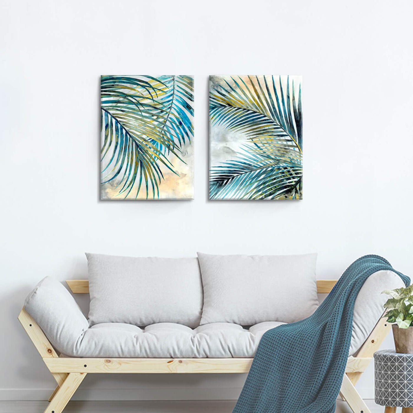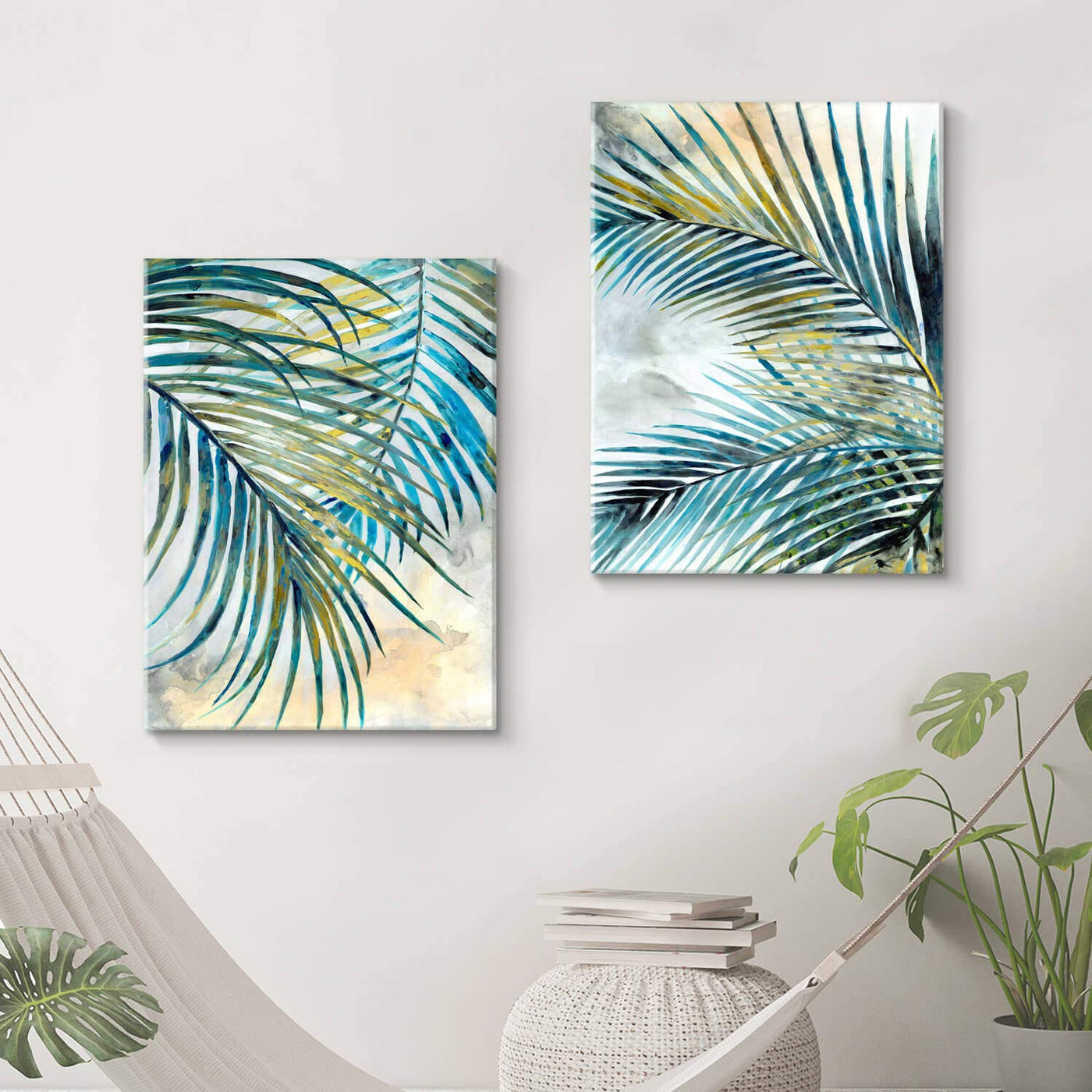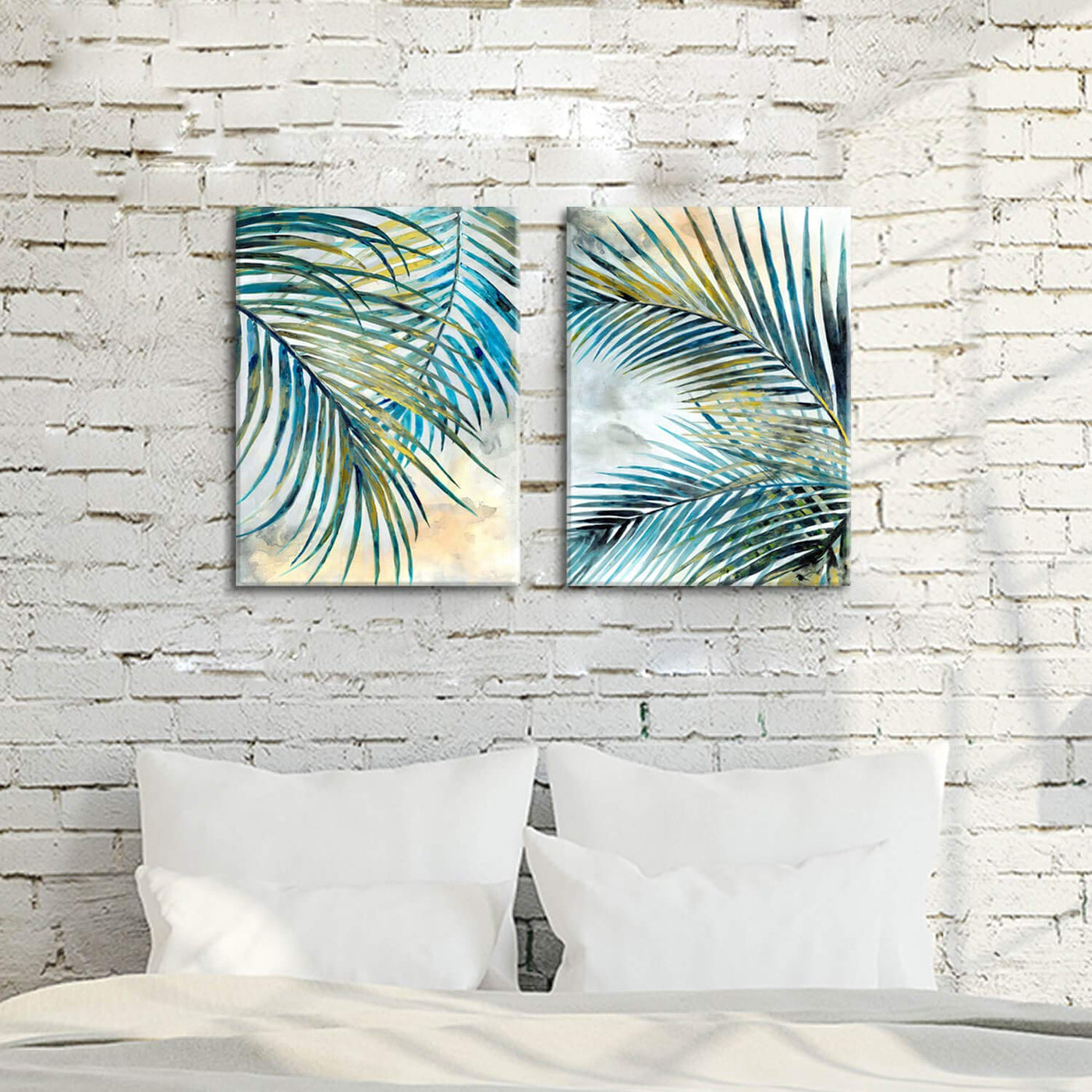 Artistic Path Palm Leaves Canvas Wall Art: Tropical Leaf Artwork Picture Painting For Bedroom (18 '' W X 24 '' H X 2 Pcs,Multi-S