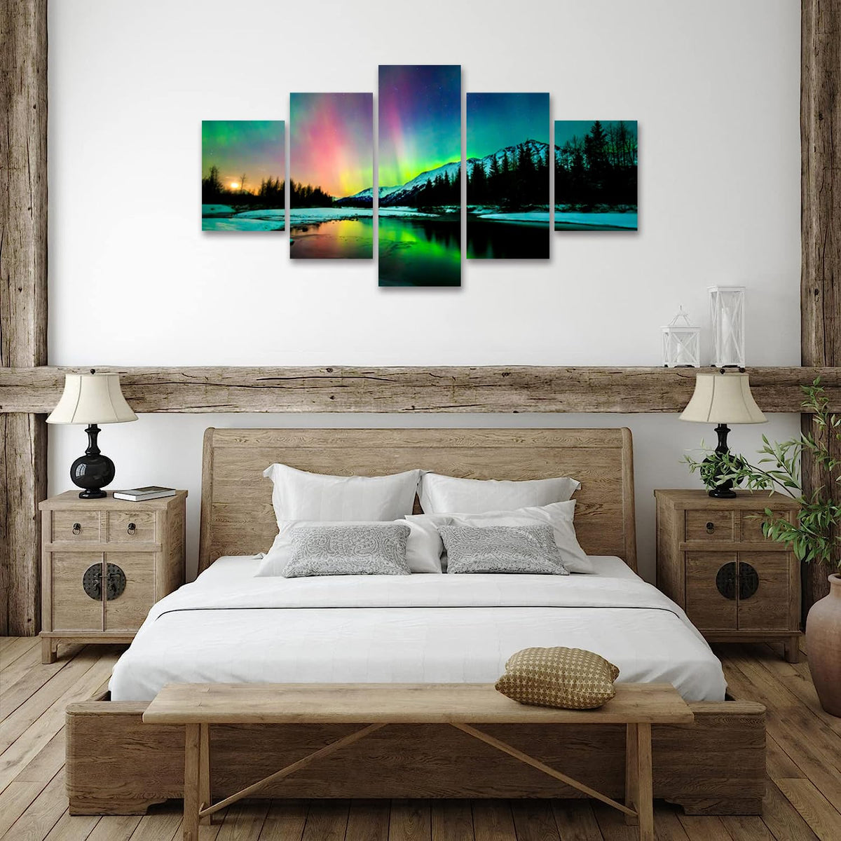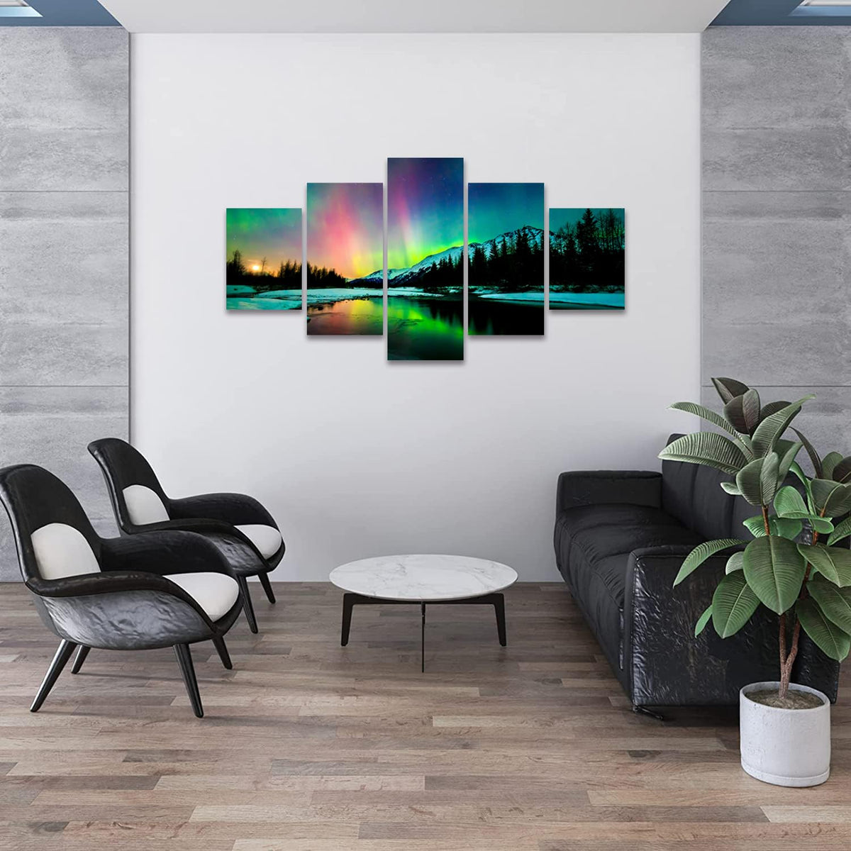 • Q: What are the dimensions of the Aurora Borealis Canvas Wall Art? A: The Aurora Borealis Canvas Wall Art is available in a framed size of 60 inches in width and 32 inches in height.