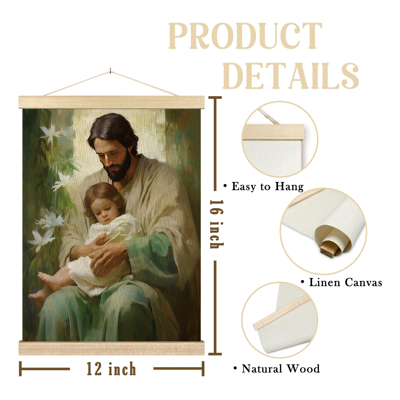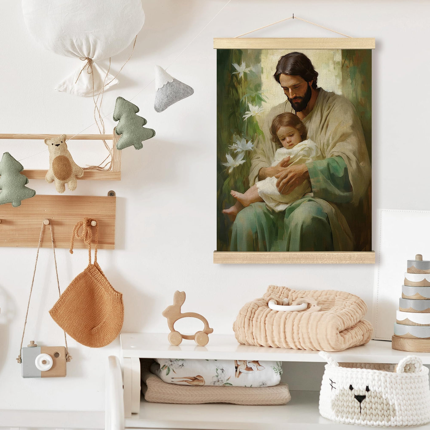 BCUANGD Christian Jesus Wall Art - Religious Divine Mercy Wall Decor Poster Hanger with Wood Frames, Serenity Prayer Baby God Wa