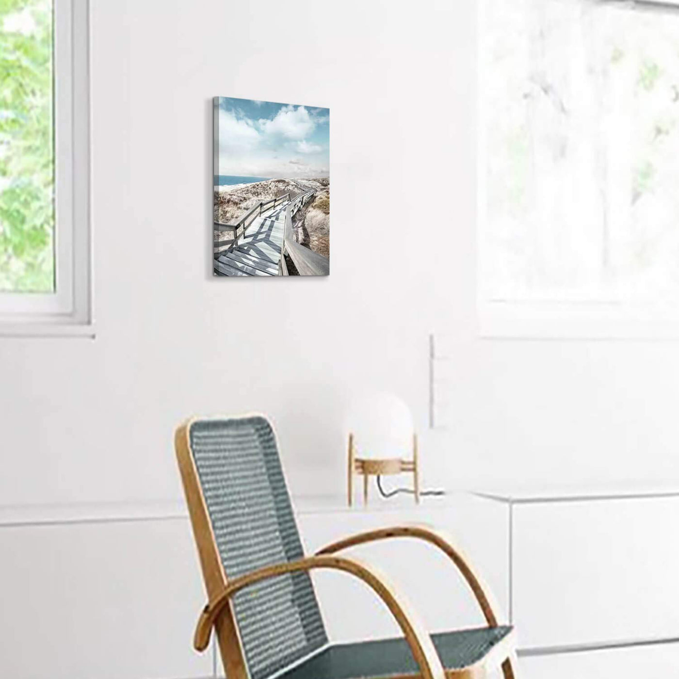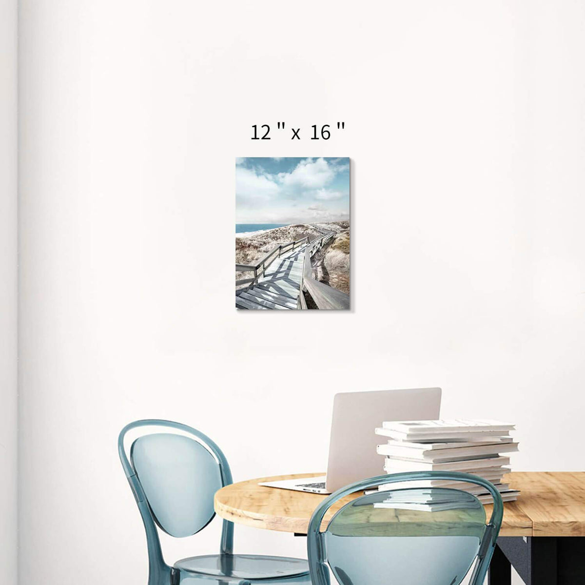 - Q: What is the design of the Beach Pier Canvas Wall Art? A: The design features a lovely beach scene with serene beige and blue hues, depicting a boardwalk leading to the ocean.