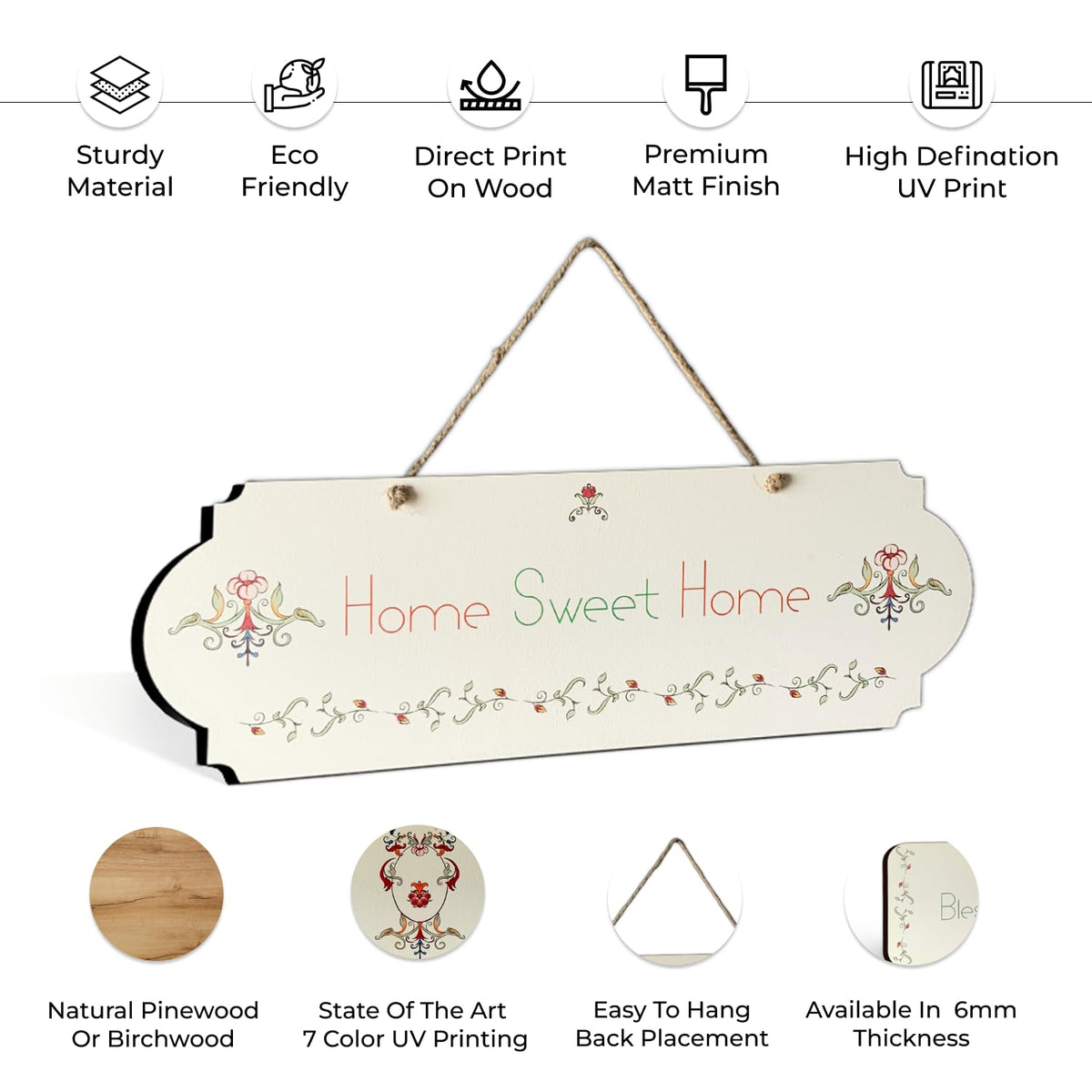 Chalk My Theme Home Sweet Home Wall Hanging For Entrance Door And Home, Wood Print Aesthetic Home Decorative Wooden Art Gift For House Warming Ceremony