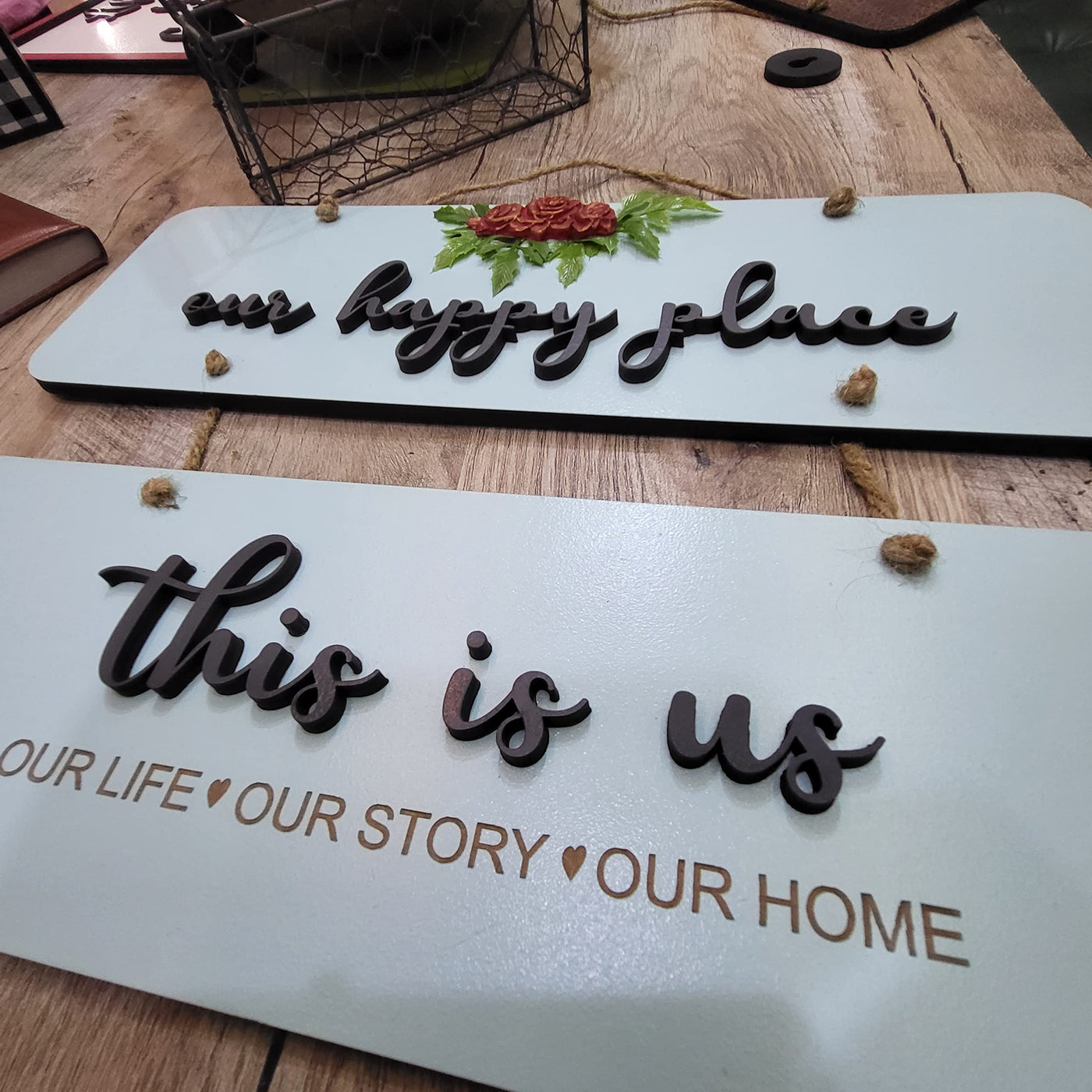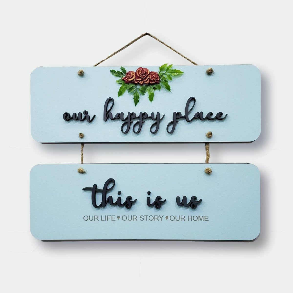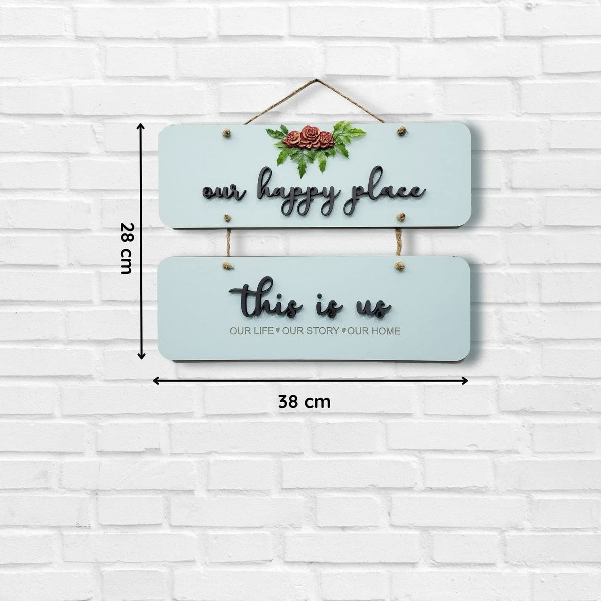 Chalk My Theme Our Happy Place Wooden Wall Hanging Hanger For Living Room, Bedroom, Gift, And Entrance-Blue