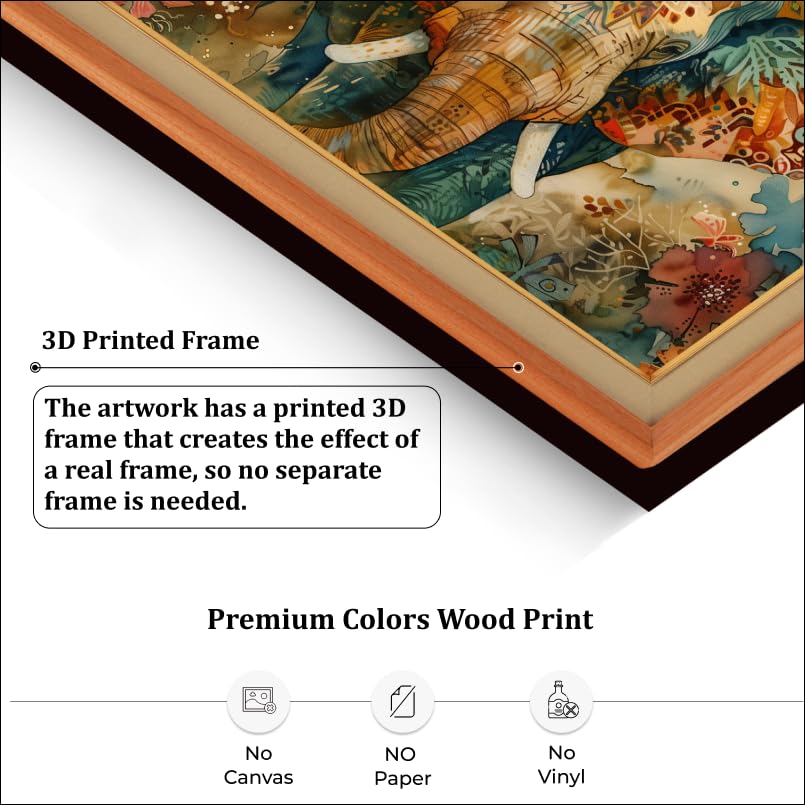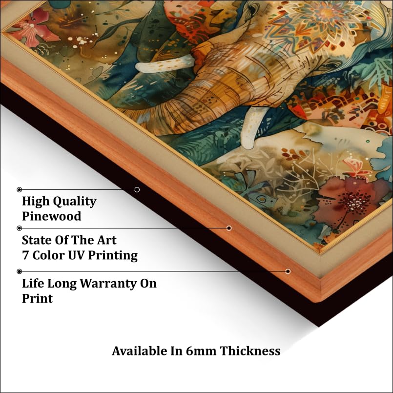 Bring Elegance And Cultural Charm To Your Space With This Traditional And Auspicious Elephant Wood Print Wall Art 23X18 Inches. Featuring A Beautifully Detailed Elephant Wood Print Wall Art, This Piece Symbolizes Strength, Wisdom, And Prosperity. The Auspicious Elephant Painting Is Perfect For Enhancing Positive Energy. Ideal For Living Rooms, Offices, Or Meditation Spaces, This Indian Elephant Artwork For Home Adds A Traditional Touch. Elevate Your Interiors With This Elephant Symbolism Home Decor Masterpiece.