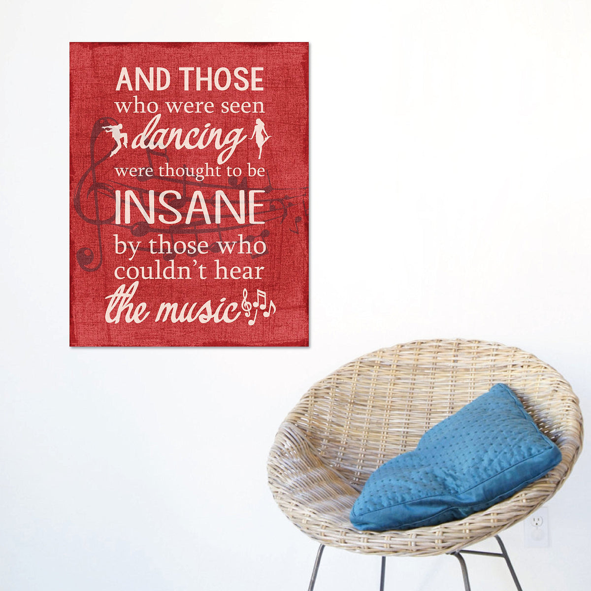 • Q: What themes does this wall art feature? A: This piece features an inspirational quote by Friedrich Nietzsche, celebrating artistic spirits and the joy of dancing.