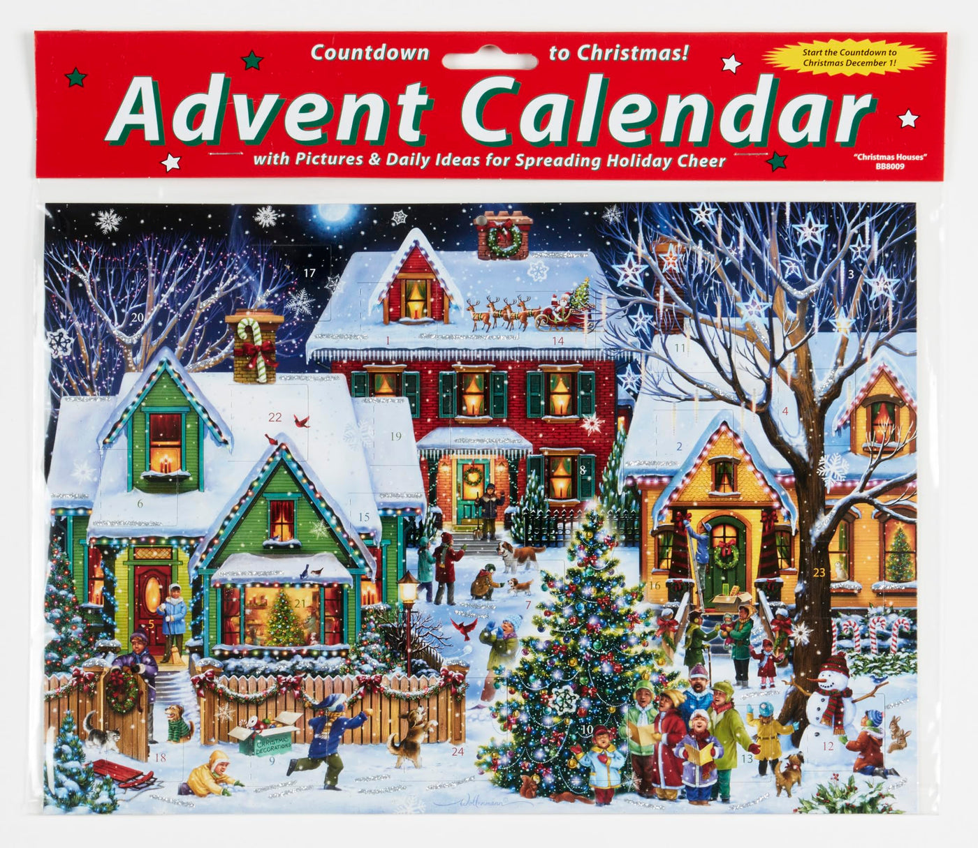 Advent calendars, also sometimes called countdown to Christmas calendars, help build the anticipation for Christmas. This traditional Advent calendar, made of paperboard, has 24 windows to be opened each day beginning on December 1. Behind each window, find a suggestion for spreading holiday cheer and a corresponding picture. The front is accentuated with glitter, and the calendar measures 8 1/4x11 3/4. The lovely artwork for this design was created Randy Wollenmann. Easy to hang or display anywhere. Rekindle an old family tradition or start a new one!