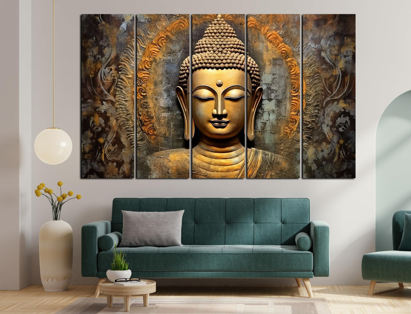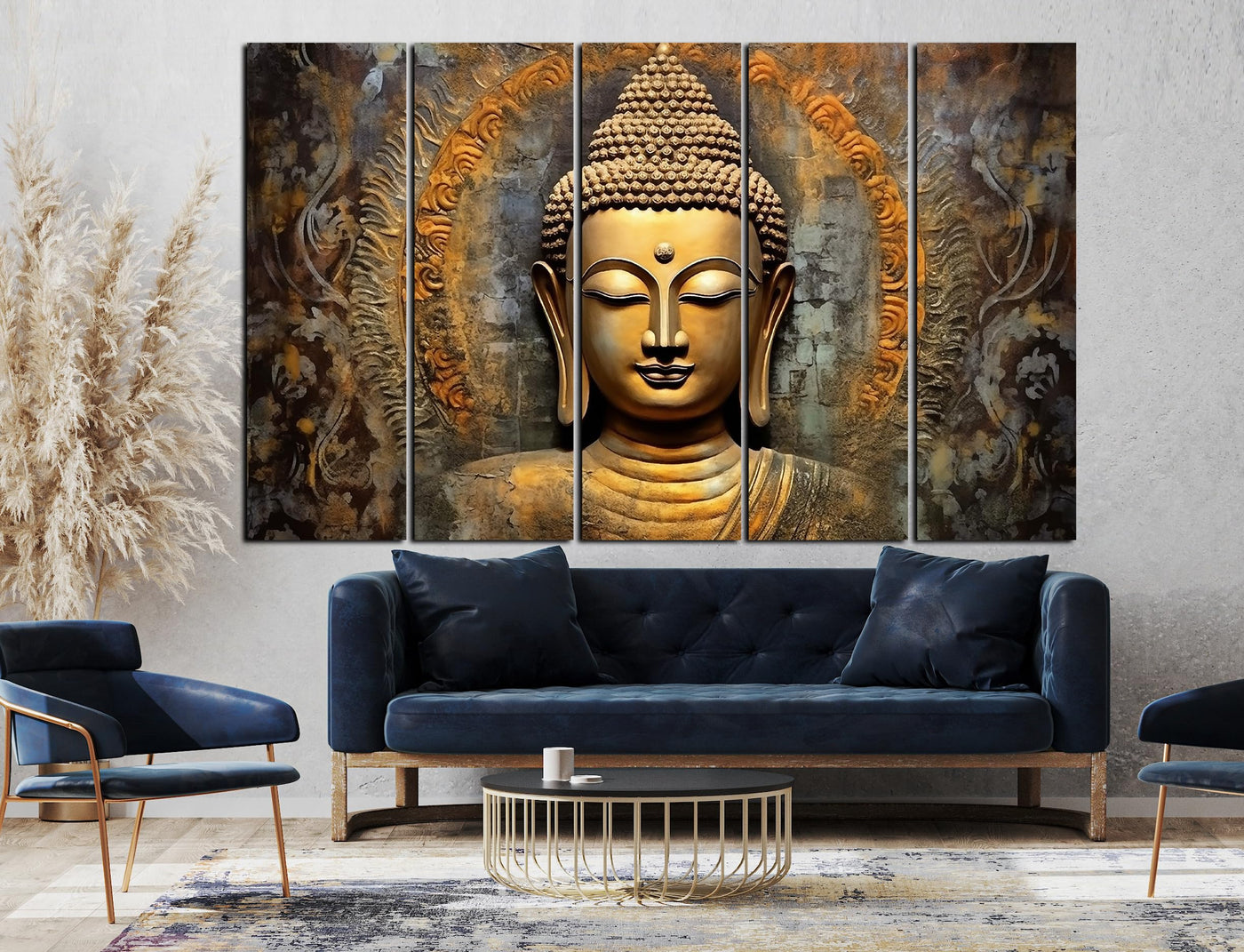 Cn Retails Lord Buddha Golden Touch Painting With Frame Big Size(48X30) Wall Art For Living Room,Bedroom,Drawing Room,Hotels-Woo