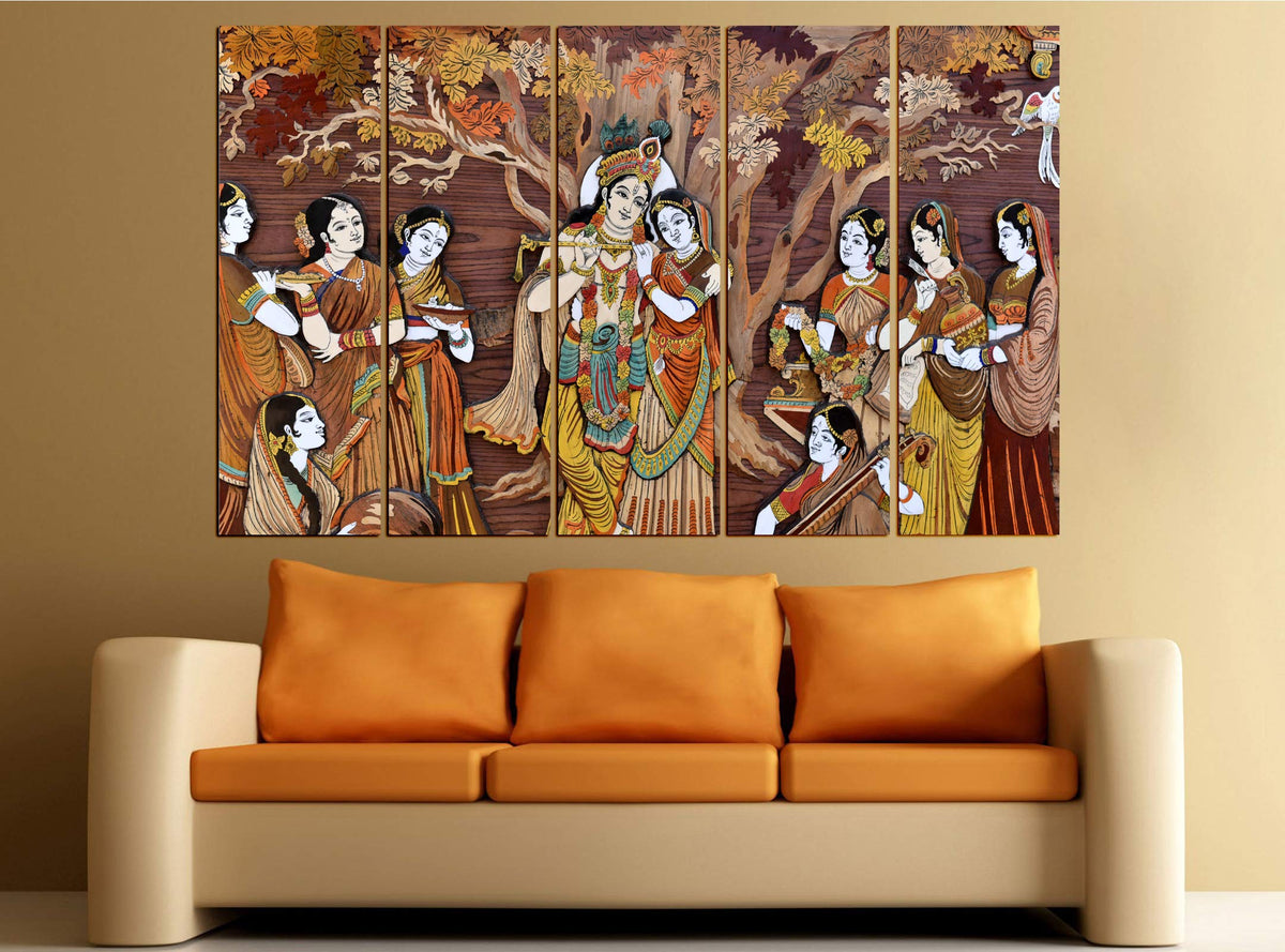 Cn Retails Multiple Frames, Beautiful Wall Art Radha Krishna Painting For Home Decor Living Room, Bedroom, Office, Hotels, Woode