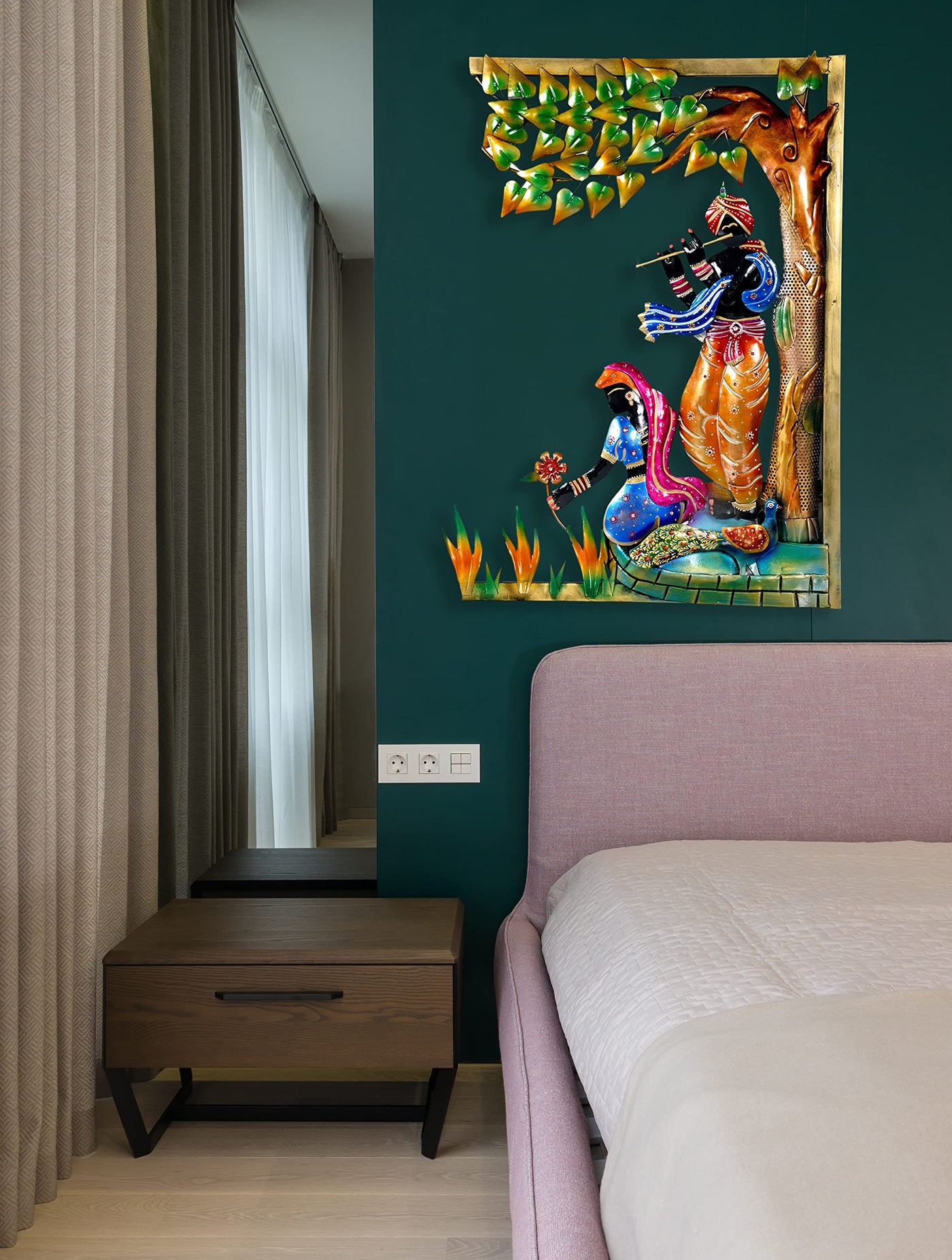 Transform Your Living Space With Divine Elegance Using This Exquisite Radhe Krishna Metal Emboss Painting God Large Wall Hanging Tree Frame Sculpture. Crafted To Perfection, This Masterpiece Exudes Spiritual Charm And Artistic Brilliance, Making It A Perfect Addition To Your Home Decor Or Office Space. Featuring Intricate Detailing And Vibrant Multicolor Hues, This Sculpture Beautifully Captures The Essence Of Radha And Krishna, The Eternal Symbols Of Love And Devotion In Hindu Mythology. The Large Size Of 30X21X1.5 Inches Ensures That It Becomes The Focal Point Of Any Room, Captivating The Attention Of All Who Behold It. Crafted With Precision And Care, This Wall Hanging Sculpture Is Not Just A Decorative Piece But Also A Symbol Of Faith And Reverence. Its Unique Design Combines Traditional Emboss Painting Techniques With Modern Aesthetics, Creating A Stunning Visual Impact That Uplifts The Ambiance Of Any Space. Whether You Place It In Your Living Room, Bedroom, Or Office, This Radhe Krishna Wall Hanging Adds A Touch Of Spirituality And Grace To Your Surroundings. It Serves As A Reminder Of The Divine Presence In Your Life, Inspiring Peace, Harmony, And Love. This Sculpture Is Not Just A Beautiful Addition To Your Decor But Also Makes For A Thoughtful Gift For Special Occasions Such As Housewarmings, Weddings, Or Religious Ceremonies. Share The Blessings Of Radha And Krishna With Your Loved Ones By Gifting Them This Exquisite Piece Of Art That Will Be Cherished For Years To Come.
