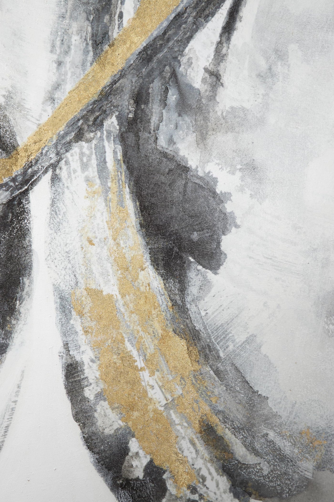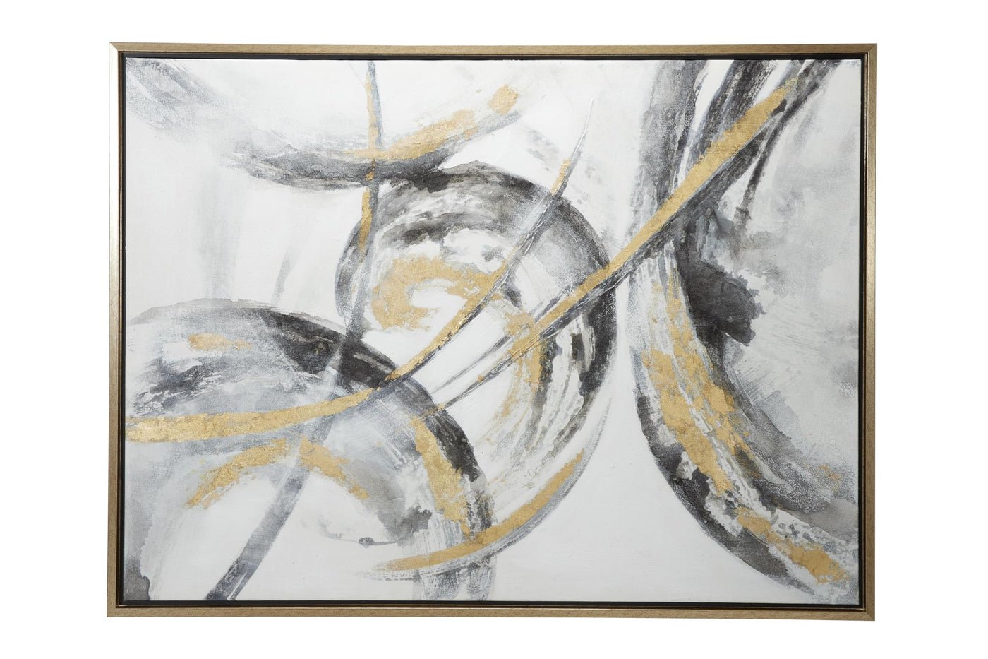 - Q: What colors are featured in the abstract design? A: The abstract design features gold, gray, white, and black colors, creating a striking visual impact.