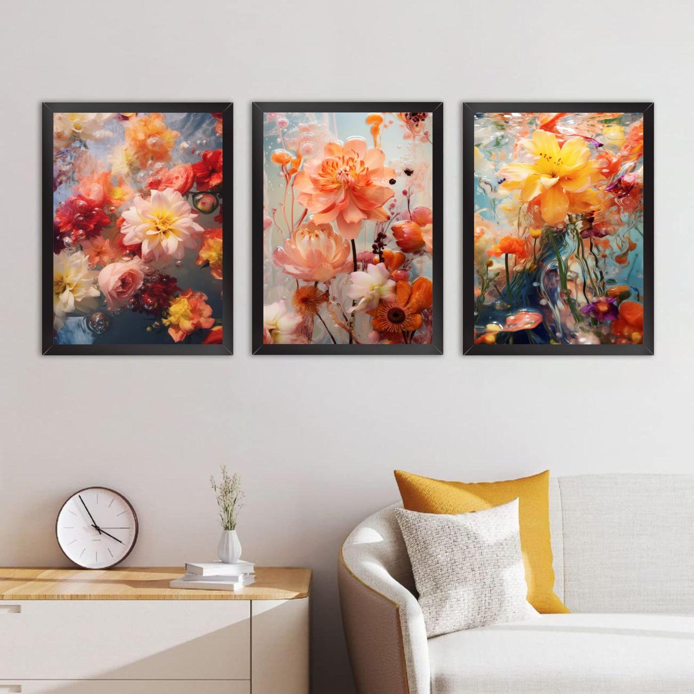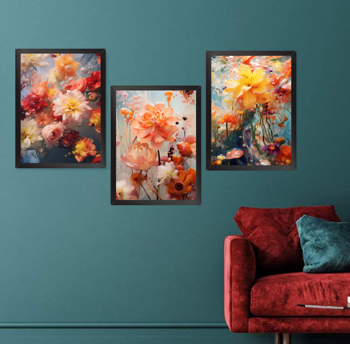 Decor Villa 3D YELLOW FLOWERS Digital Framed Painting for Wall Decoration - Wall Art Prints for Living Room Bedroom Office Room