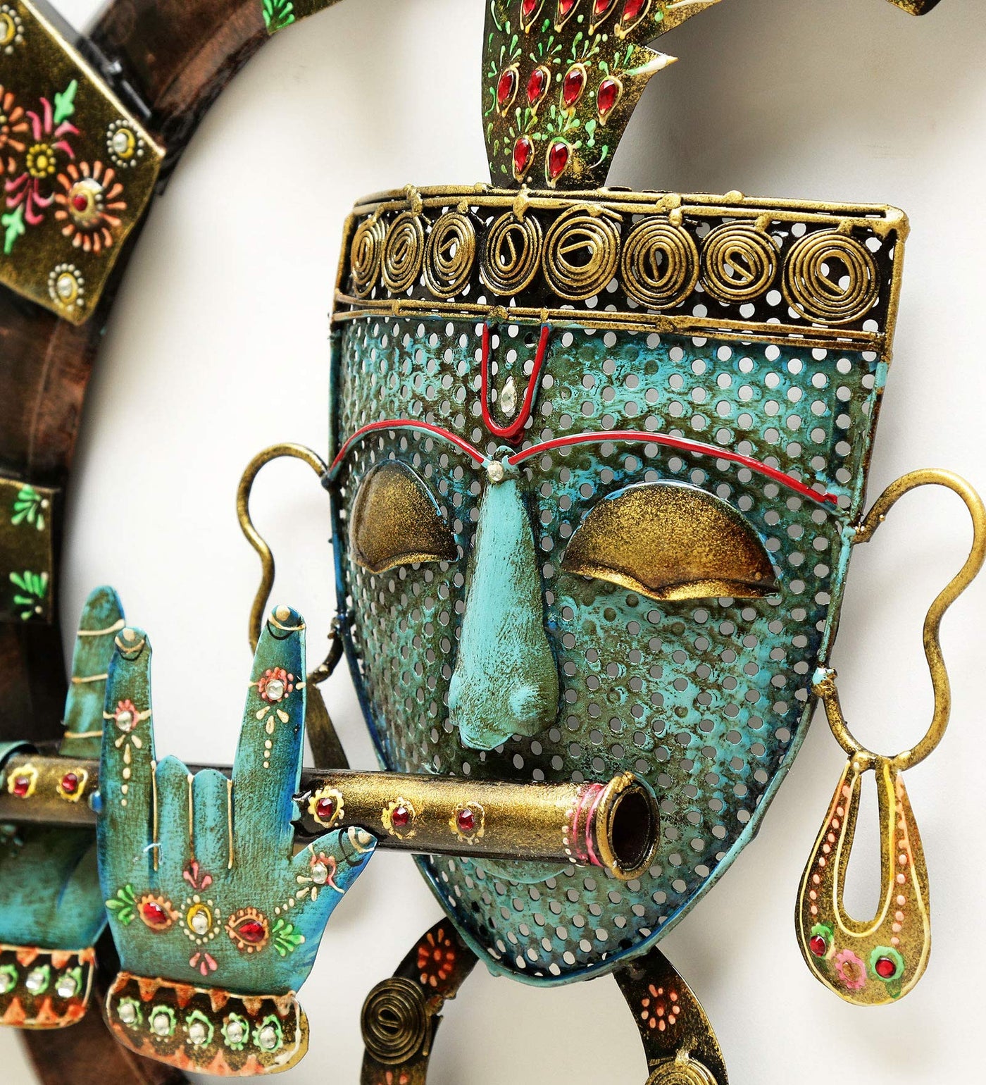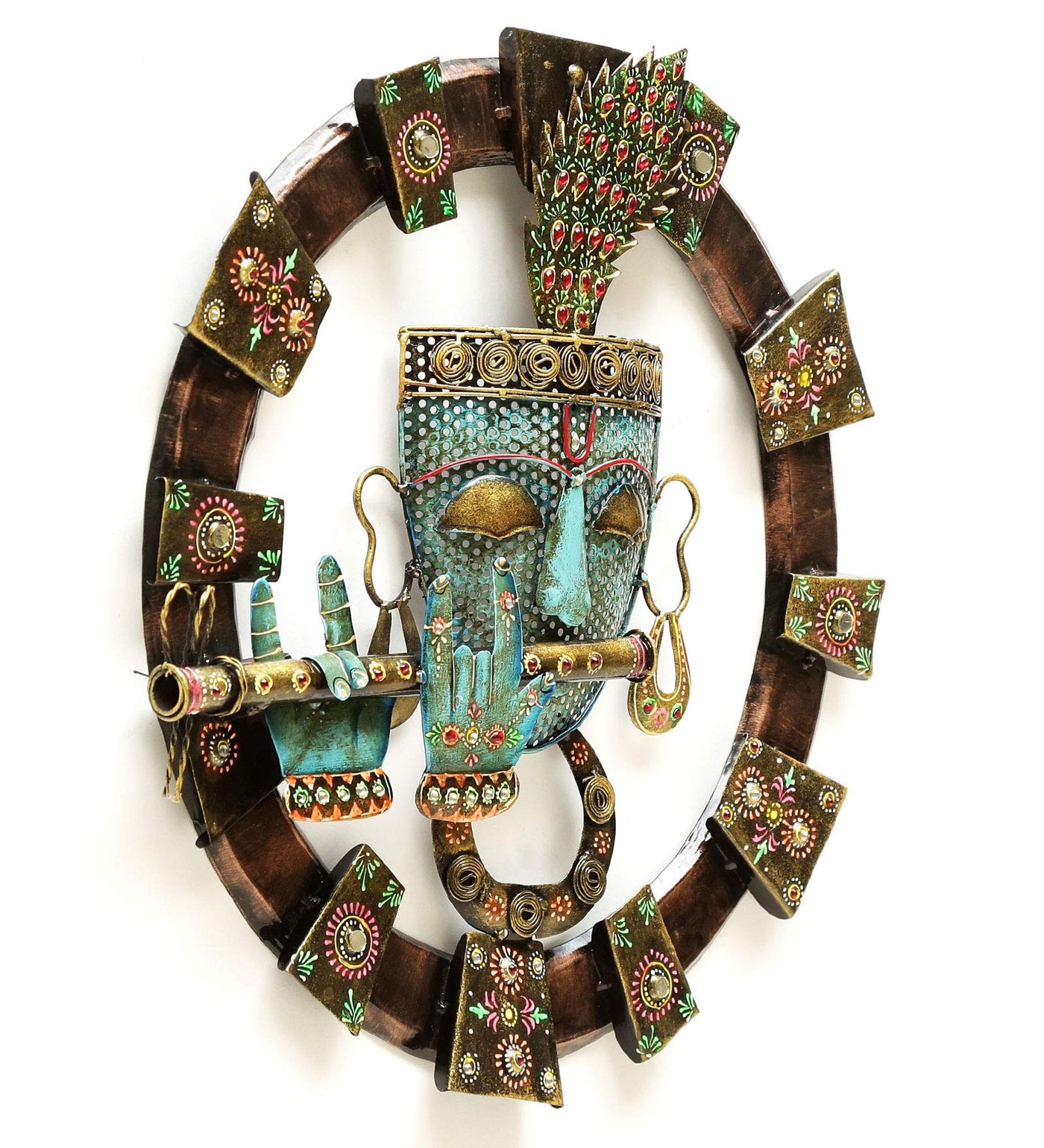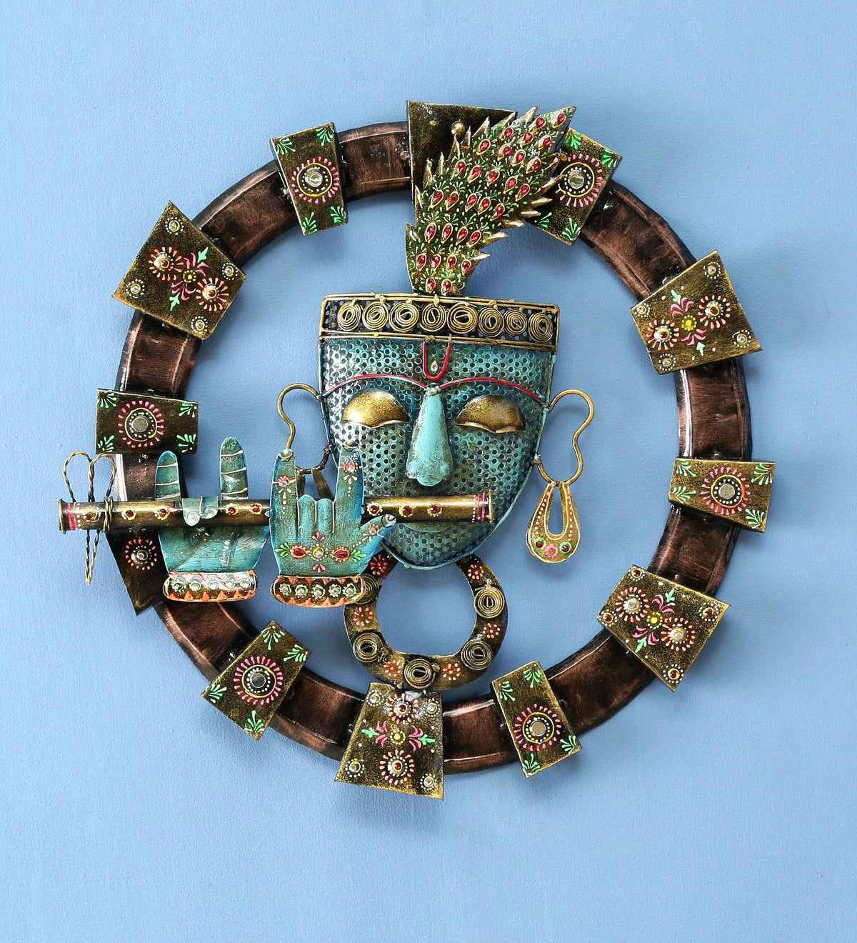 Desert Art Iron Krishna Wall Hanging In Blue Colour(48.26 X5.08 X48.26) Cm