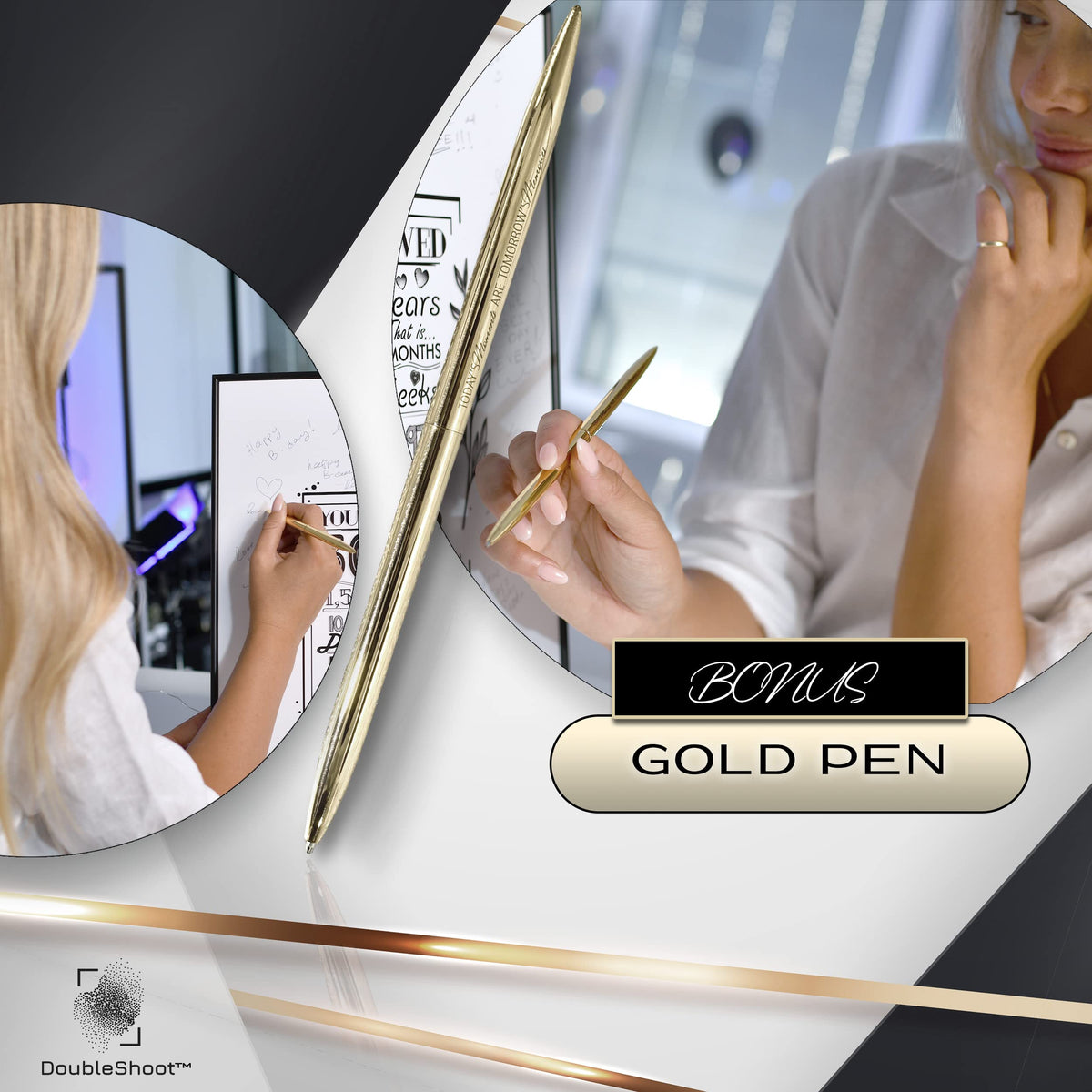 - Q: What makes the included gold pen special? A: The gold pen is weighted for a luxurious feel and features an engraved message that reads 'Today's Moments Are Tomorrow's Memories', making it a perfect accessory for signing the poster.