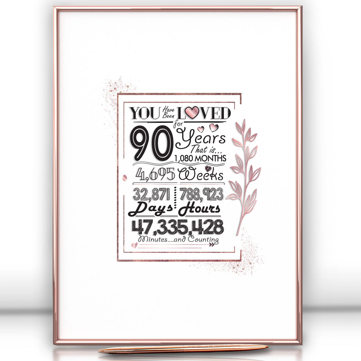 Framed Rose Gold 90Th Birthday Decorations Sign Poster For Girl - 90 Birthday Gift 12 ''X16 '' Guest Party Favors Book Alternati
