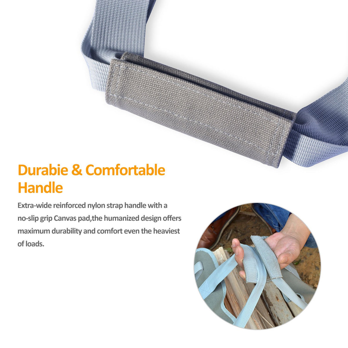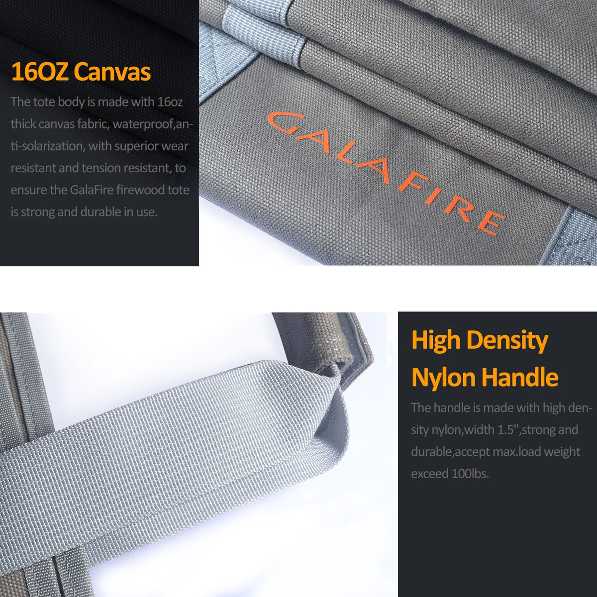 - Q: What design features make the GALAFIRE Wood Carrier comfortable to use? A: The carrier features an extra-wide nylon strap handle with a no-slip grip canvas pad, providing maximum comfort and durability when carrying heavy loads.
