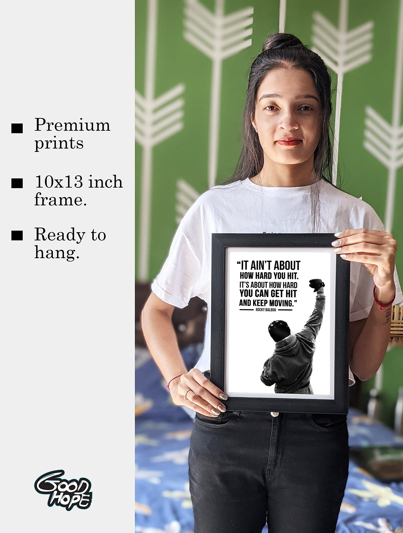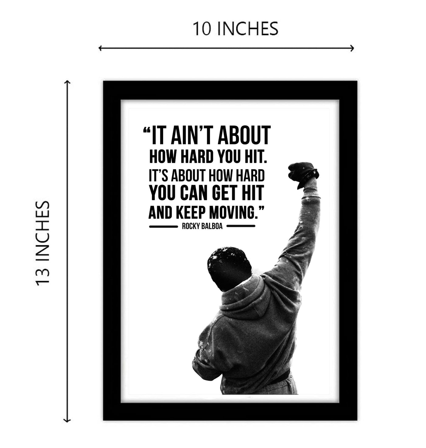 Gray Wall Acrylic Glass Sylvester Stallone Rocky Balbao Quote Framed Poster, Multicolor For Room & Office (10 Inch X 13 Inch)