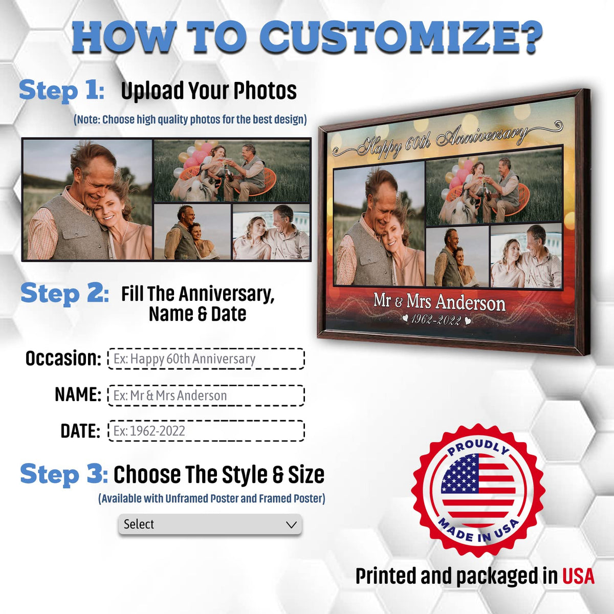 HANIKID Personalized Happy 60 th Wedding Anniversary As Mr And Mrs Grandparents Poster Holidays Keepsake Romantic Custom Canvas With Your Photo Gift For Grandma Grandpa Grandparent Decor Home Prints