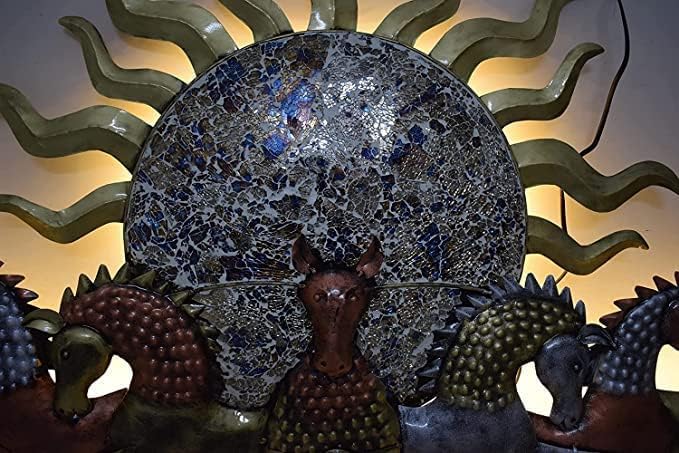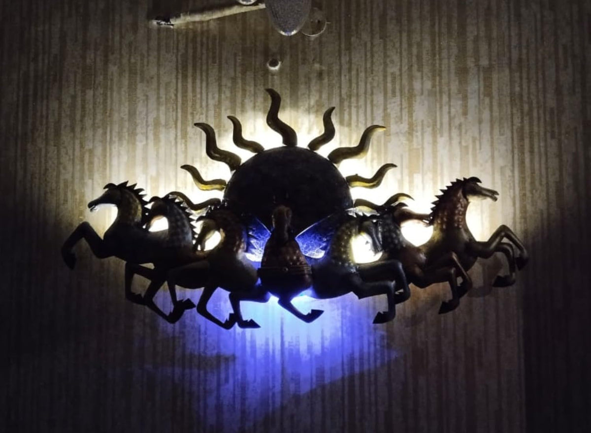 HANSART 48 Inches 7 Horses with Sun Metal Wall Art with Led Light, Wall Decor for Home or Office