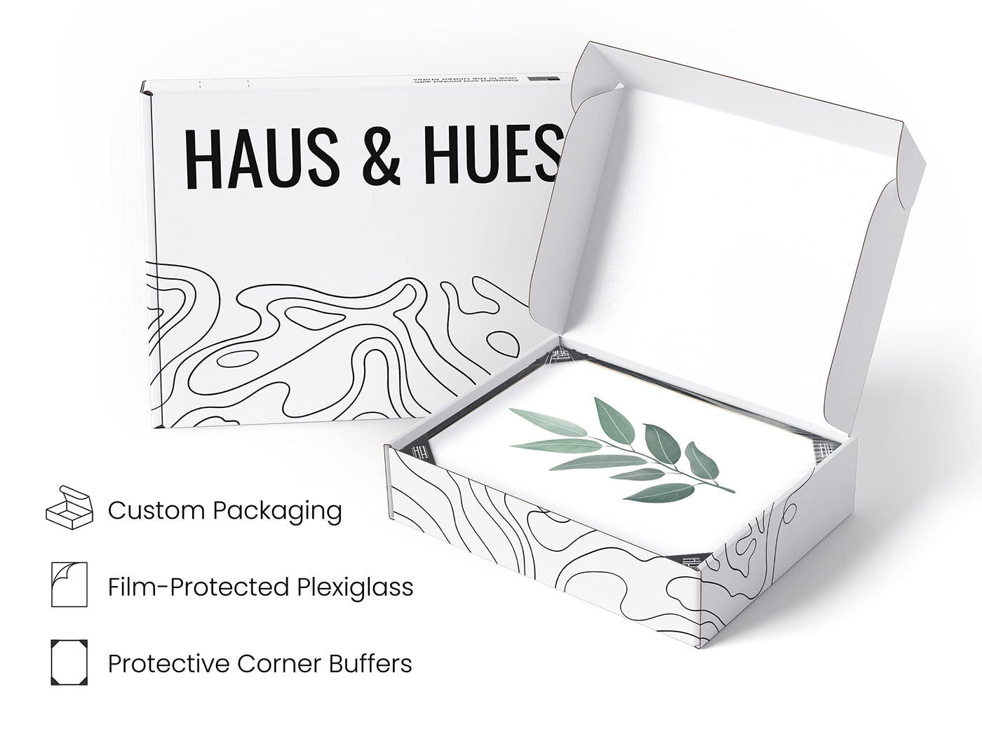 - Q: What kind of images are featured in the botanical prints? A: The prints feature various shades of green leaves and tropical plant designs that evoke a connection to nature.