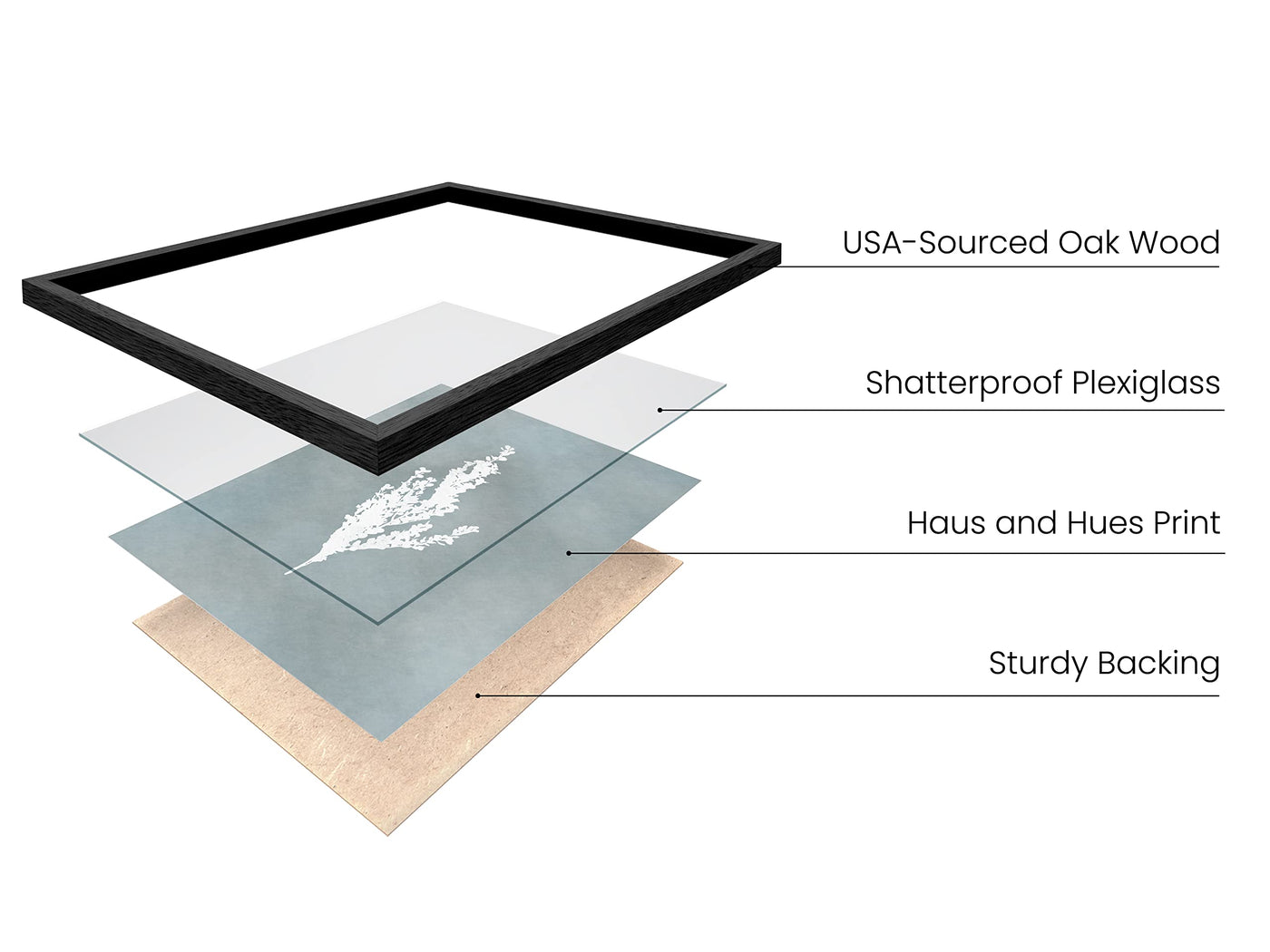 - Q: What materials are used in the frames? A: The frames are made from 100% natural oak wood, premium plexiglass, and MDF backing.