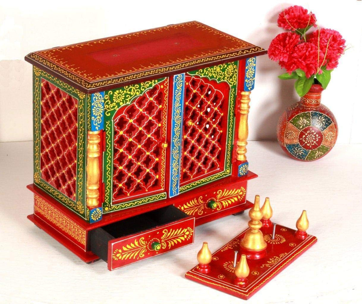Home and Bazaar Rajasthani Ethnic Handcrafted Wooden Temple/Mandir/Pooja Ghar/Mandapam (Multicolor12)