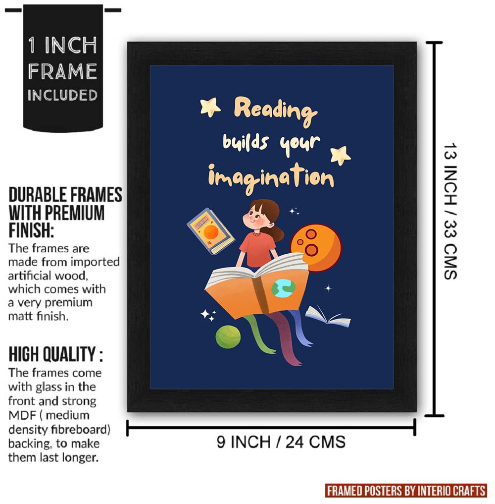 Interio Crafts Framed Poster For Readers, Quote Poster For Library And Study Room Wall Decor, Synthetic Wood, Black Frame, 13 X