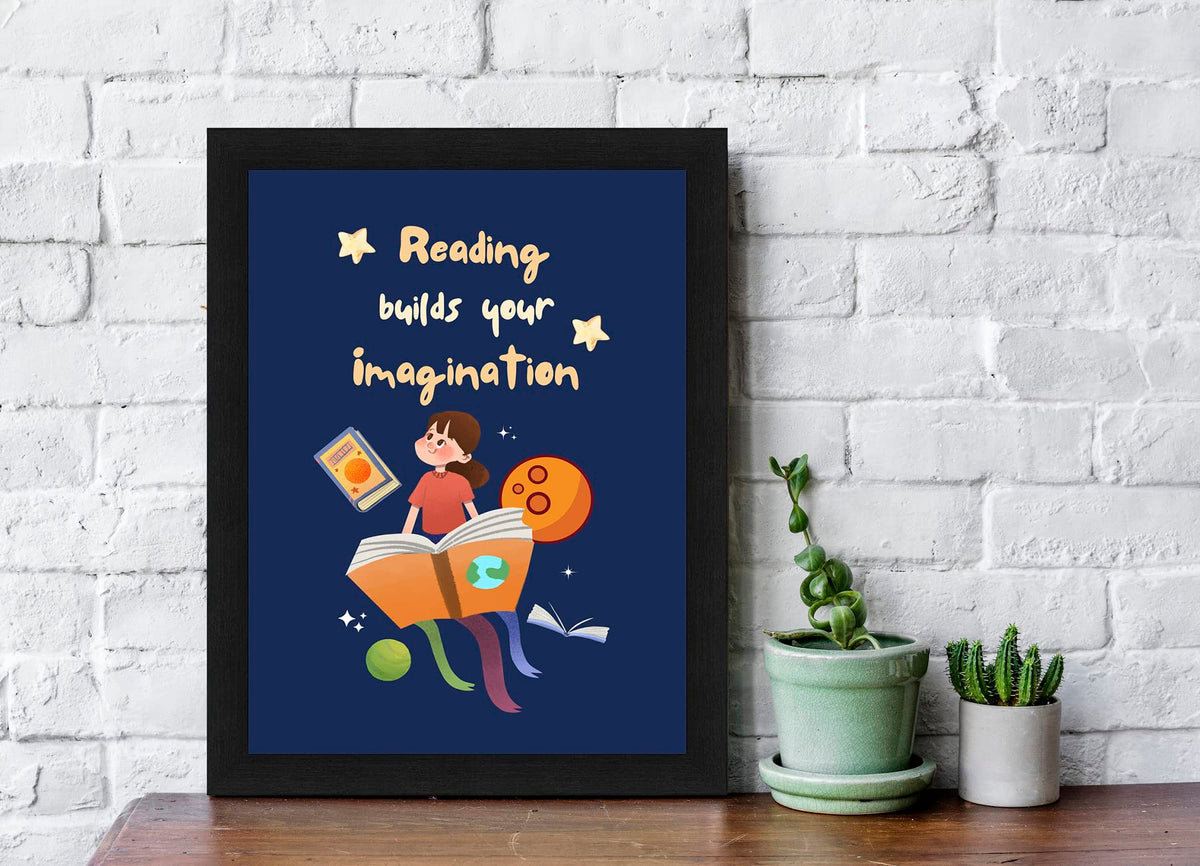 Introducing Our Reading Builds Your Imagination Framed Poster, An Inspiring And Motivating Piece Of Wall Decor That Celebrates The Joys And Benefits Of Reading. This Motivational Wall Frame Measures 13 X 10 Inches And Comes With A Sleek Black Frame That Complements Any Decor Style. The Poster Features The Quote Reading Builds Your Imagination In Bold, Striking Letters, Reminding You Of The Power And Importance Of Reading. The Background Is A Stunning Image Of A Blue Sky, Creating A Serene And Calming Visual Effect That Is Perfect For Any Study Room Or Library. Our Motivational Framed Poster Is A Must-Have For Anyone Who Loves To Read. Whether YouRe A Bookworm Or Just Starting To Explore The Joys Of Reading, This Poster Is A Perfect Fit. It Is A Great Poster For Library, Study Room Decor, Or Library Decoration Poster That Will Add A Touch Of Inspiration And Motivation To Any Space. This Poster Is Also A Great Gift For Readers Of All Ages. Whether YouRe Looking For A Birthday Present, Graduation Gift, Or Just A Special Surprise For Your Book-Loving Friend Or Family Member, This Poster Is Sure To Delight And Inspire. In Summary, Our Reading Builds Your Imagination Framed Poster Is A Beautiful And Inspiring Piece Of Wall Decor That Celebrates The Joys And Benefits Of Reading. It Is A Perfect Fit For Any Study Room, Library, Or Personal Reading Nook. Get Your Hands On This Poster Today And Let It Inspire You To Explore The Wonderful World Of Books And Reading!