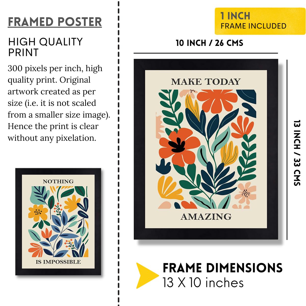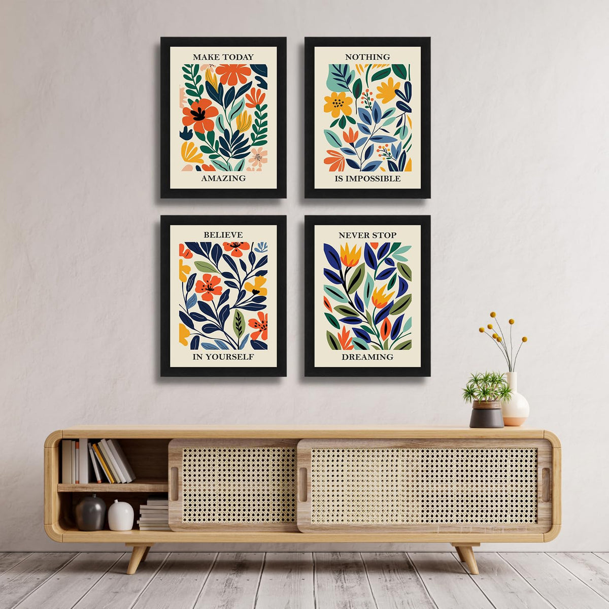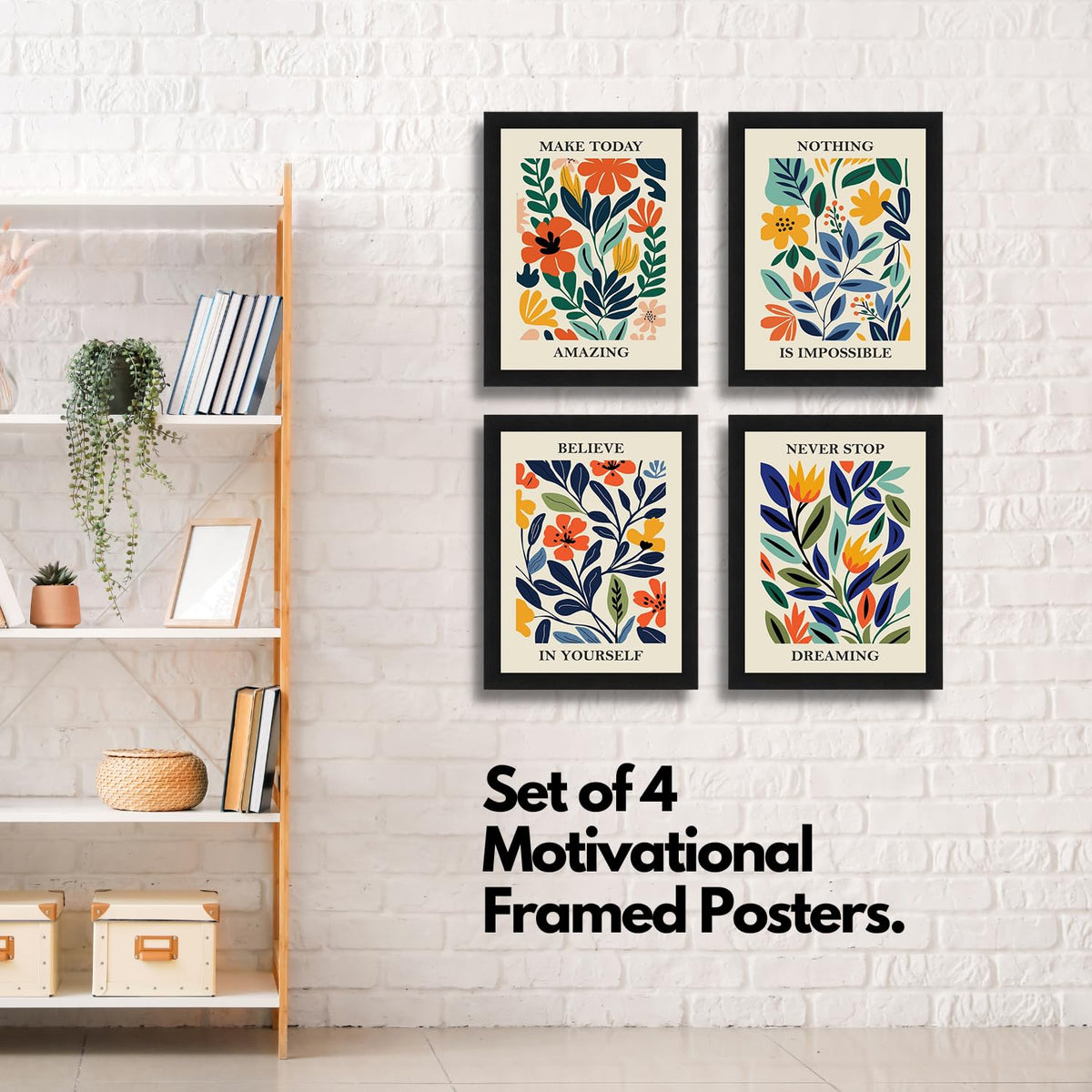 Interio Crafts Set Of 4 Inspirational Quotes Wall Framed Posters - Motivational Frames For Kitchen, Living Room, Bedroom Or Stud