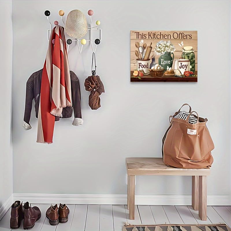 KACHI PENCIL Wooden Framed Kitchen Wall Art Farmhouse Rustic Kitchen Pictures Wall Decor Canvas Print Painting Modern Home Frame