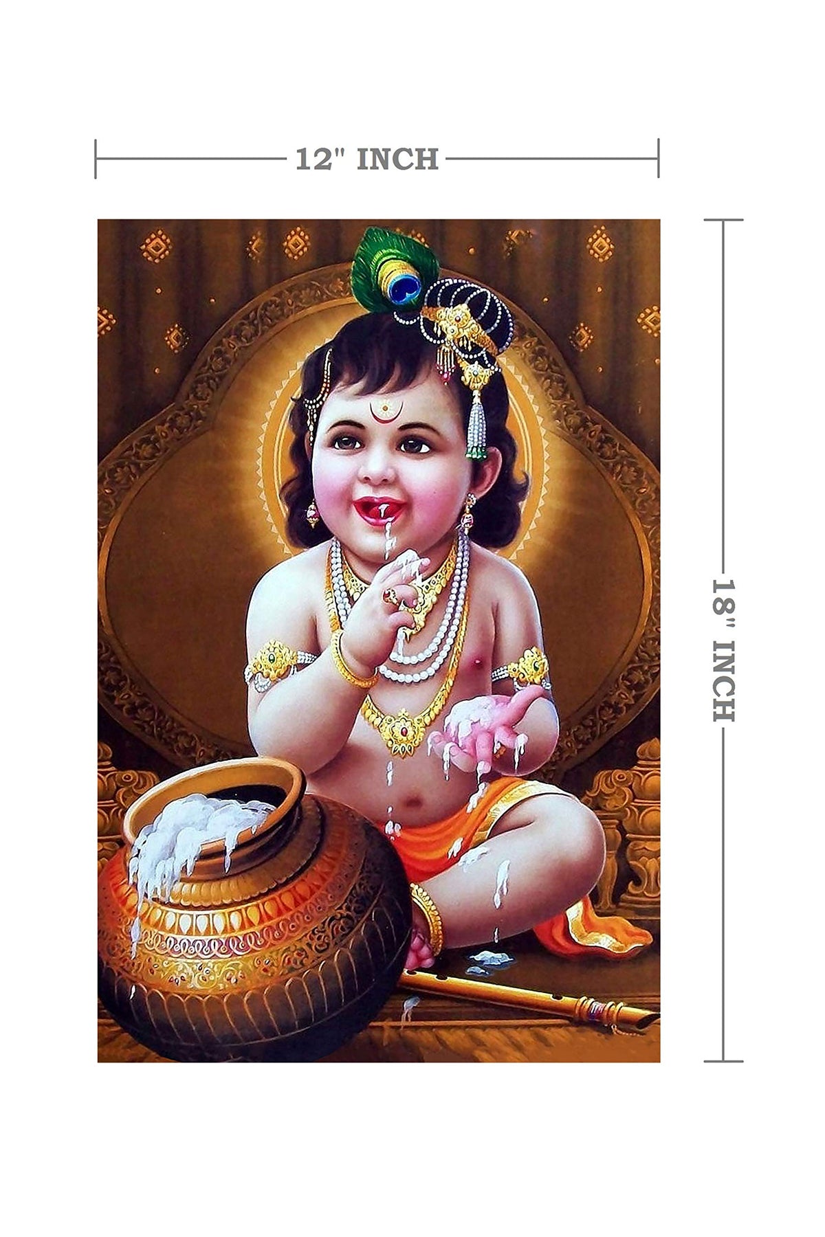 Manial Paper Religious Baby Krishna Artwork, Multicolour, Printed, 12 X 18 Inch