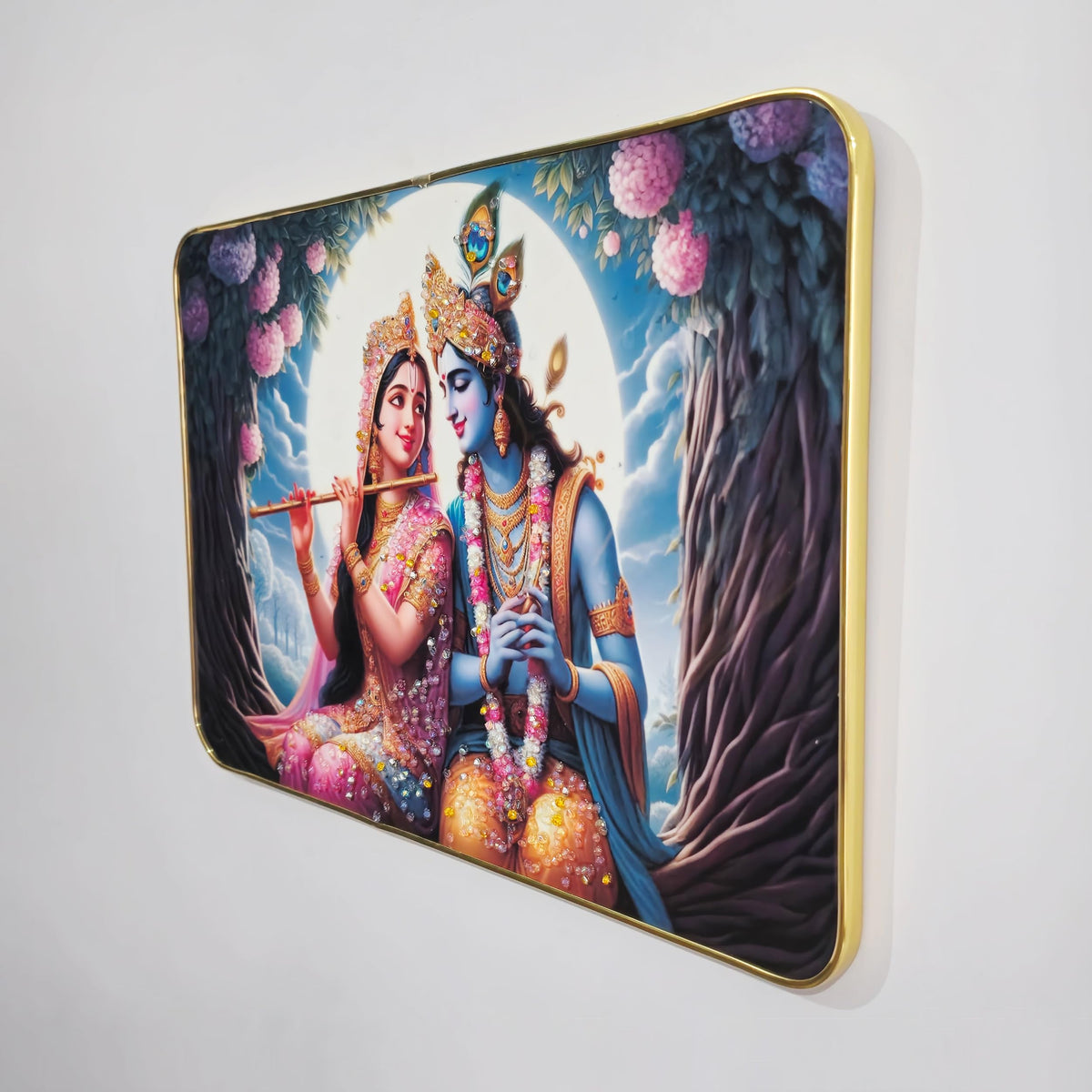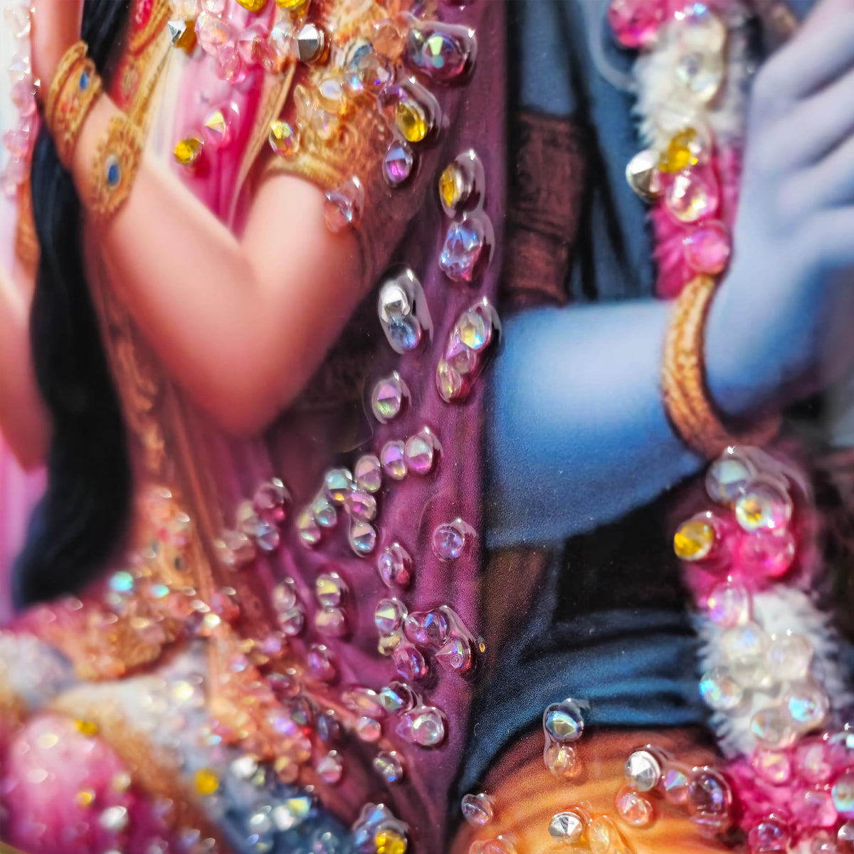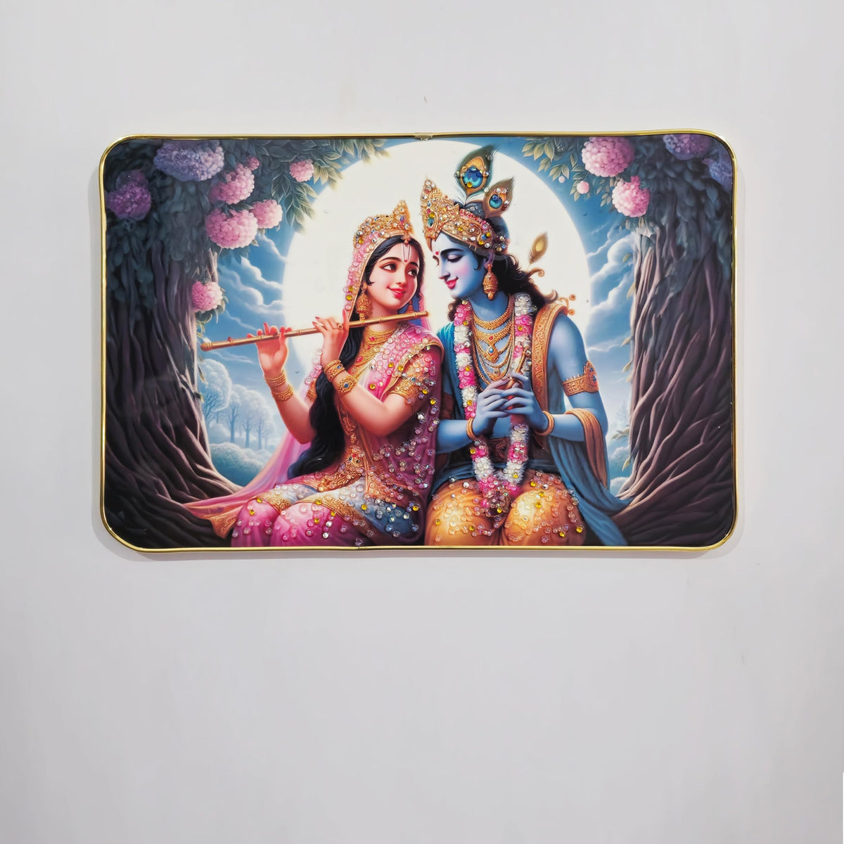 Masstone Radha Krishna Wall Painting Crystal Embedded, High Gloss, Gold Slim Frame, 45X30Cm Wall Art For Living Room, Bedroom,