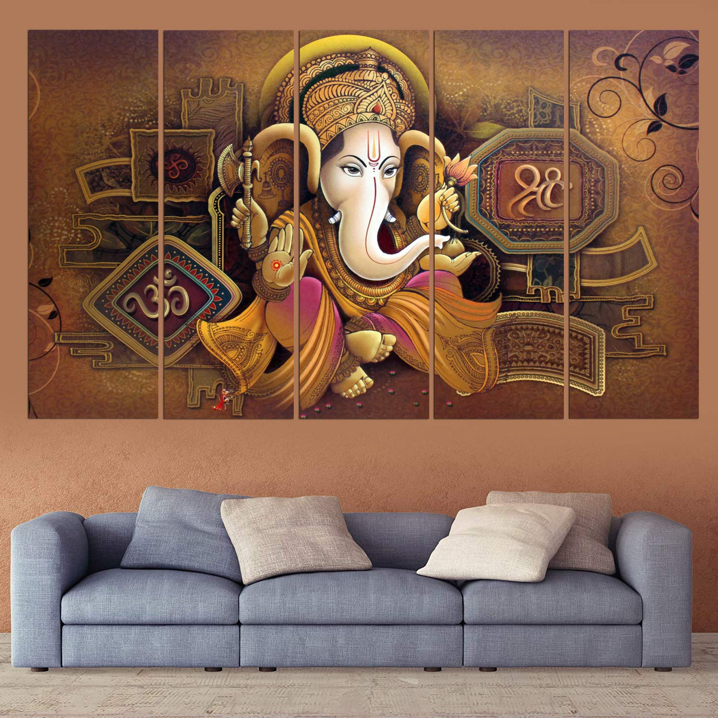 Maxstone Big Size Multiple Frames Ganesh ji Wall Painting for Living Room, Bedroom, Home, Office, Drawing Room, Hotels Decor Woo