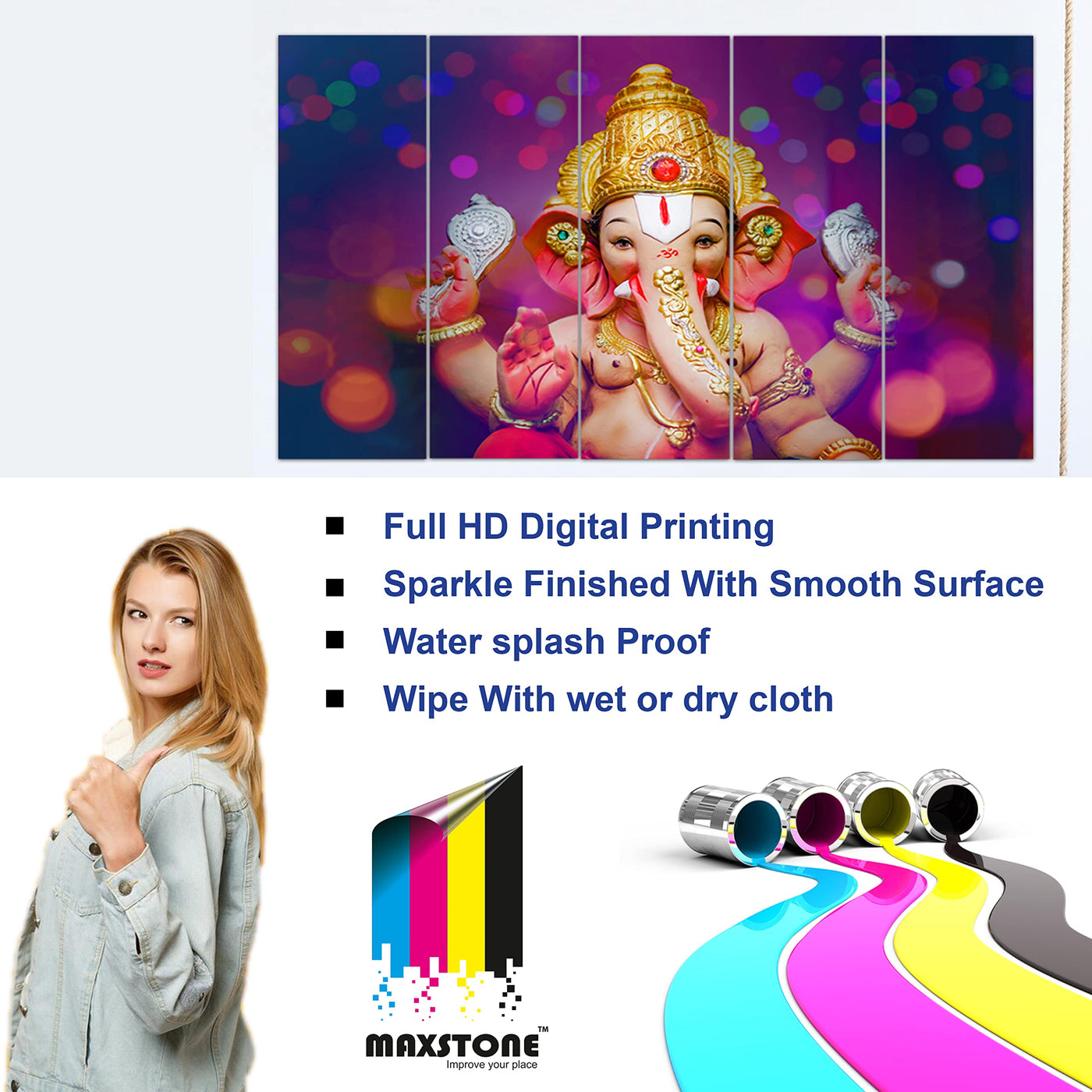 Maxstone Ganpati ji Multiple Frames Big Siz Wall Painting (50 x 30 Inch, Vynl) For living Room, Bedroom, Drawing Room, Home, Off