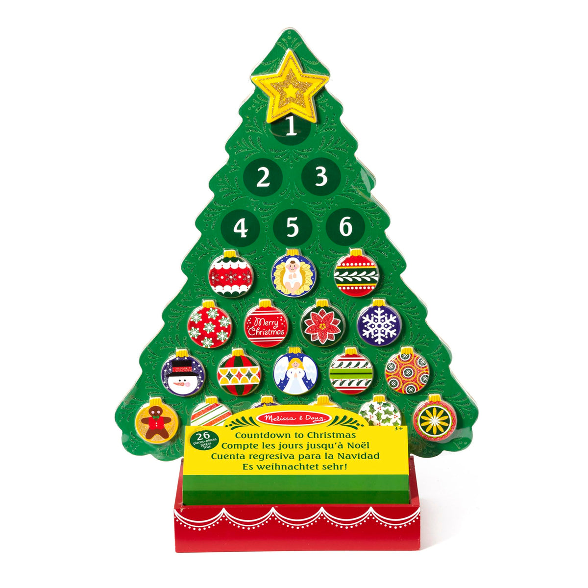 Add some kid-friendly Christmas cheer and a charming yuletide ritual to your home with this wooden magnetic advent tree! The set includes 24 magnetic ornaments plus a shining star for Christmas day--all of which fit neatly in the attached box at the base of the tree. Kids can pick a favourite design to place on the tree each day, following the numbered outlines to fill the tree right up to Christmas. Theyll also love to switch, move, and rearrange the pieces to customize their very own tree countless times.Decorating your Countdown to Christmas Wooden Advent Calendar will not only become a highly-anticipated annual tradition, it can also be a great way to help promote and reinforce many developmental skills as children grow. Use the numbers on the tree to help young children with number recognition and to learn to count both forwards and backwards; as they get older, ask children to add the numbers in a row. Play games with the ornaments to help develop colour recognition and memory skills. For example, have kids find all of the ornaments that have red but no green or name all of the colours on individual ornaments. Or, ask them to choose five ornaments and study them carefully; then, have them to close their eyes while you remove one ornament. Can they guess which one is missing? The learning possibilities are endless!For more than 30 years, Melissa and Doug has created beautifully designed imagination- and creativity-sparking products that NBC News in the US called the gold standard in early childhood play. We design every toy to the highest-quality standards, and to nurture minds and hearts. If your child is not inspired, give us a call and well make it right. Our phone number is on every product!