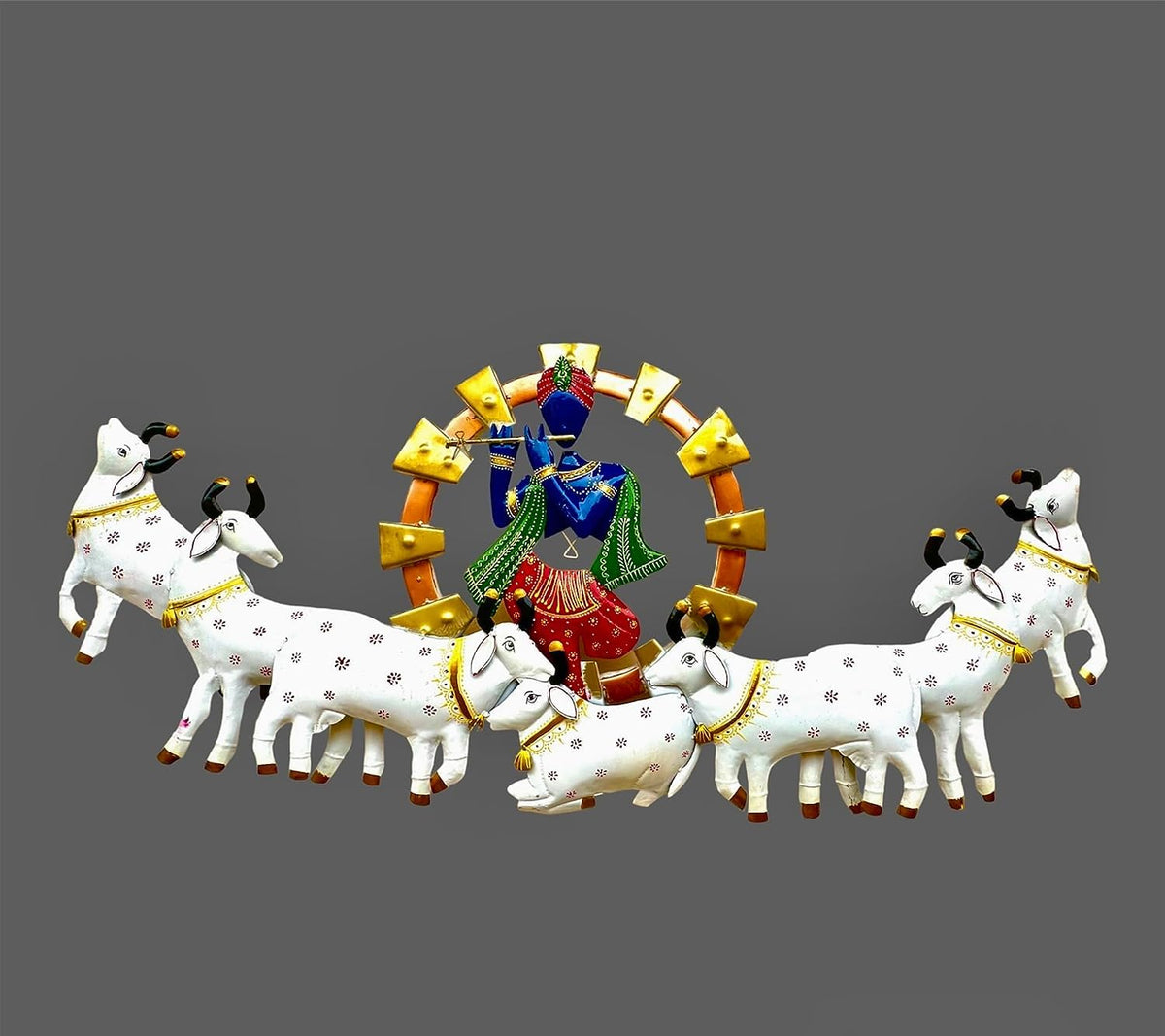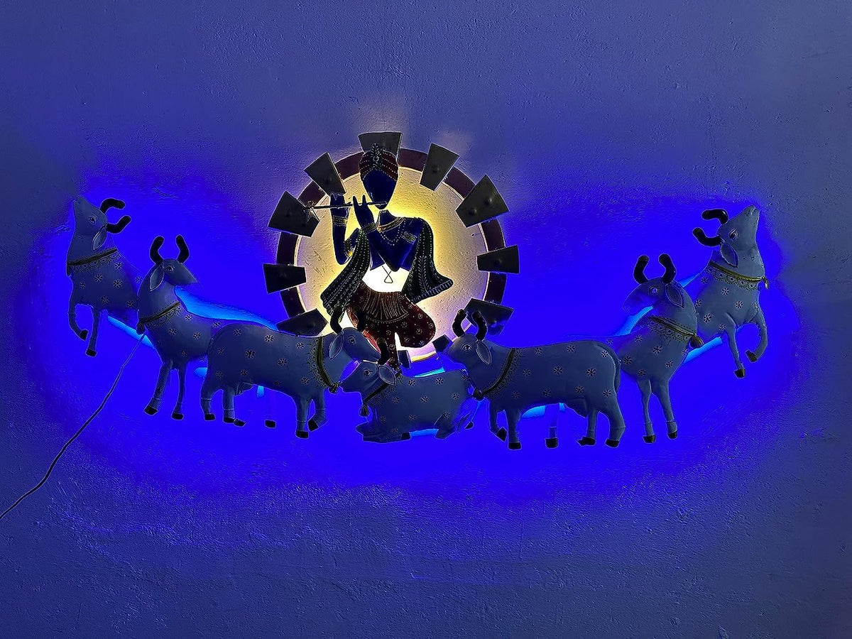 Metal Krishna Playing Basuri With Cow Wall Hanging For Home Decoration, Wall Sculpture For Living Room, Wall Hanging Decorative