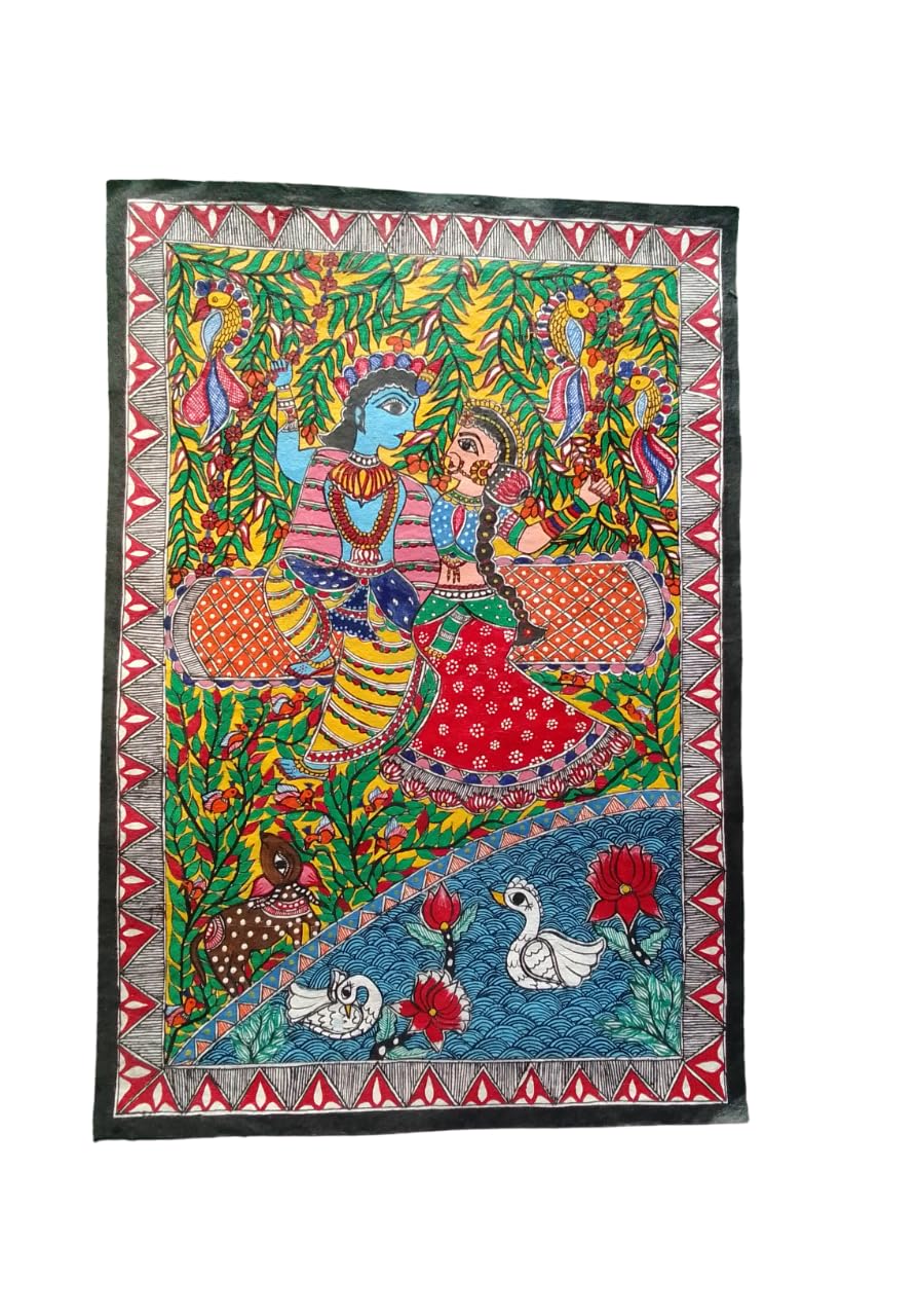 Mini Art Mithila Painting Madhubani Painting Of Radha Krishna (22 X15 Inch)-Unframed