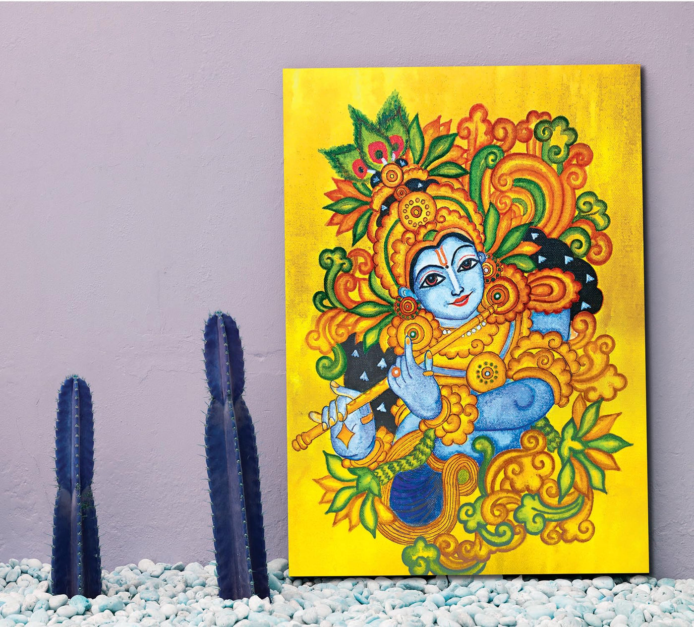 Namaste Home - Canvas Painting - Shree Krishna - Kerala Mural - Religious Canvas Painting - (Cotton Canvas, Small Size 15X19 Inc