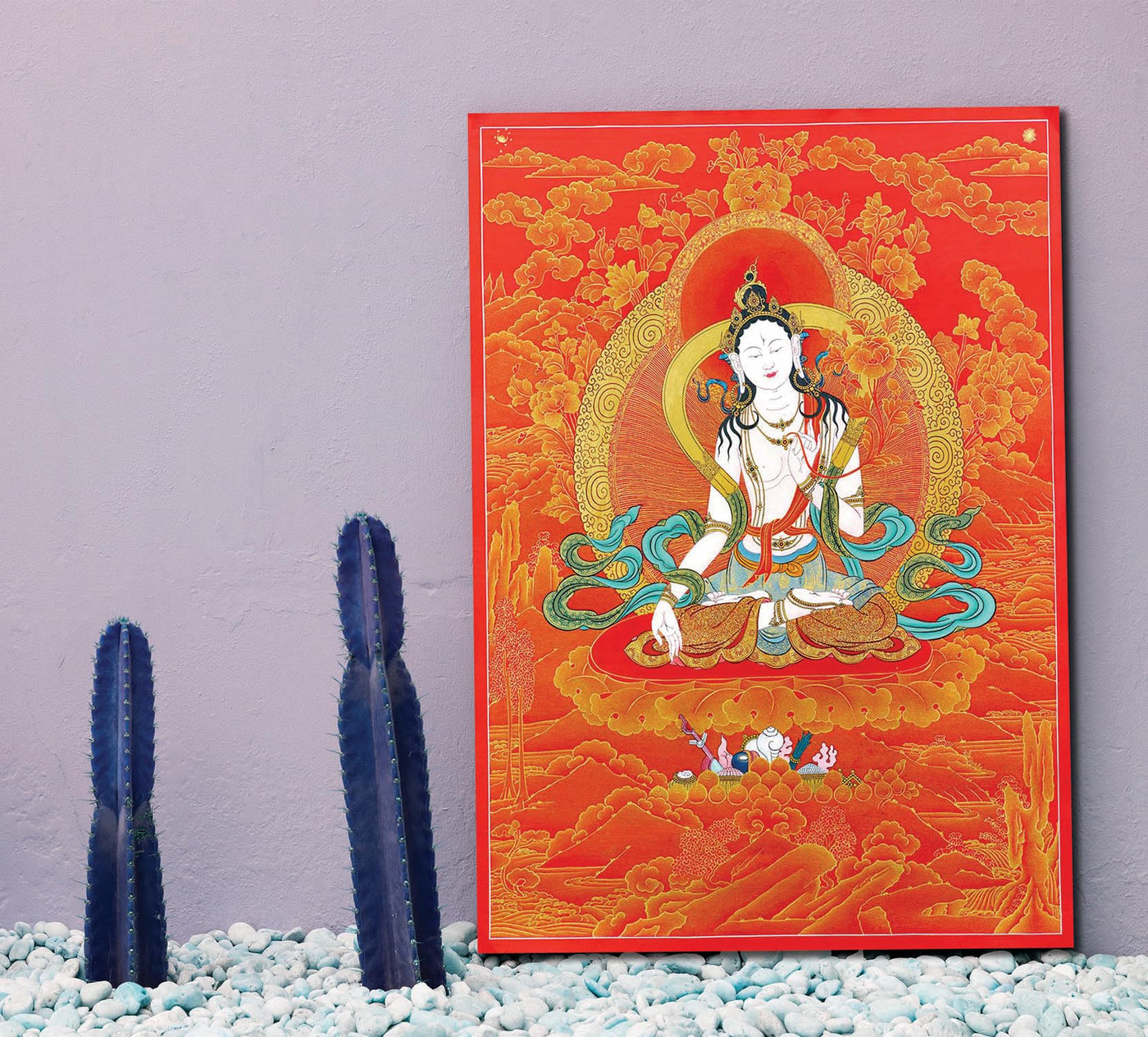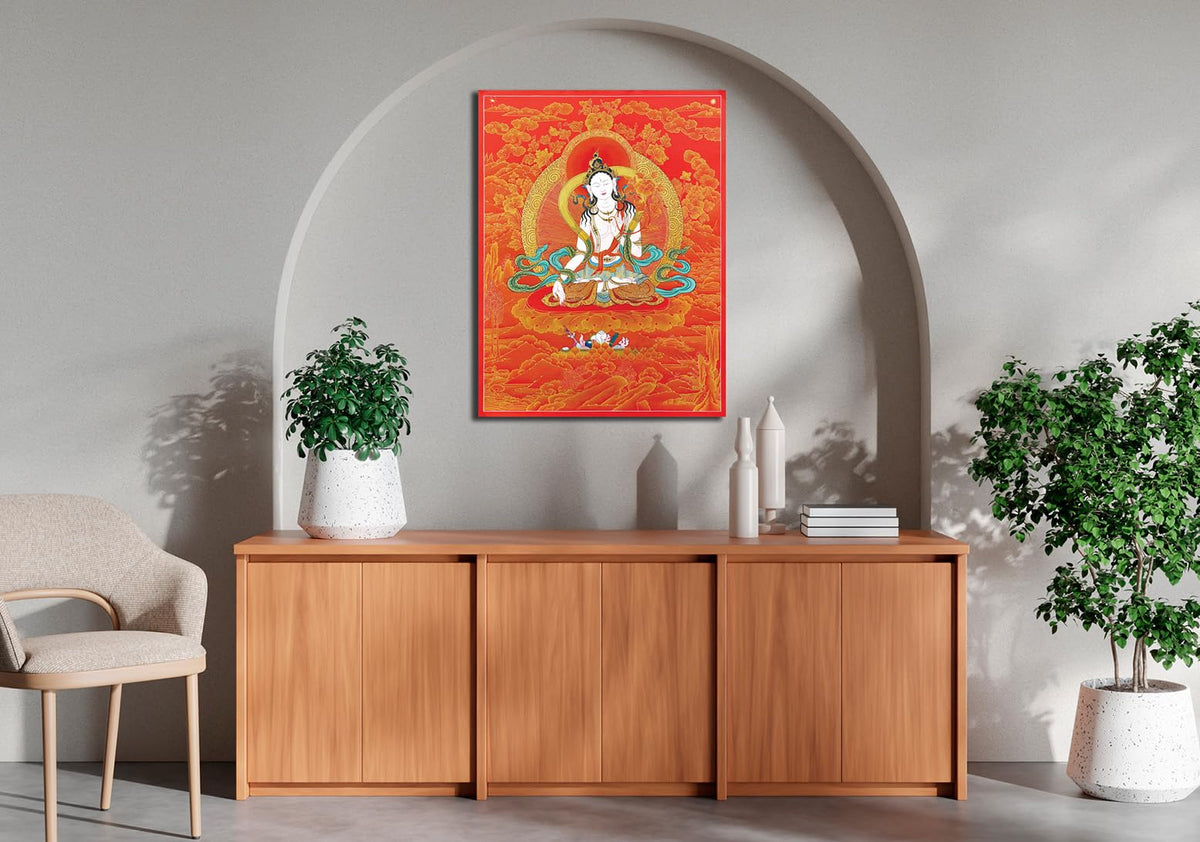 Namaste Home - Canvas Painting - White Tara Buddha - Thangka Art - Tibetan Art - Wall Art for Living Room Decoration (Unframed,