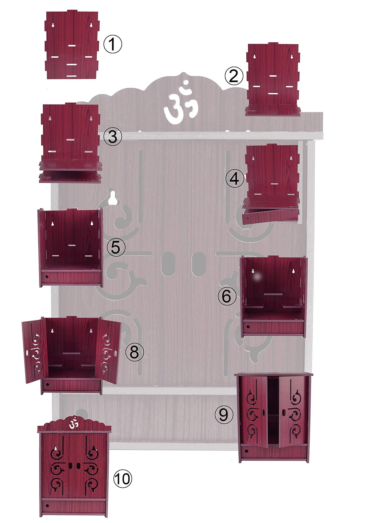 Nexat Art Wooden Wall Hanging Temple For Home And Shop,Office And Home Showpiece Temple(Size:41 X 28 X 19 Cm) (Brown) (Marron 45